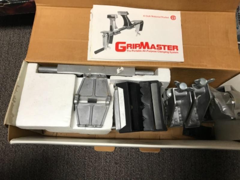 Clark GripMaster Portable All-Purpose Clamping System, all 8 basic pieces in original box. Listed as used, but appears to have never been removed from box or assembled. 2nd photo shows contents of box.
