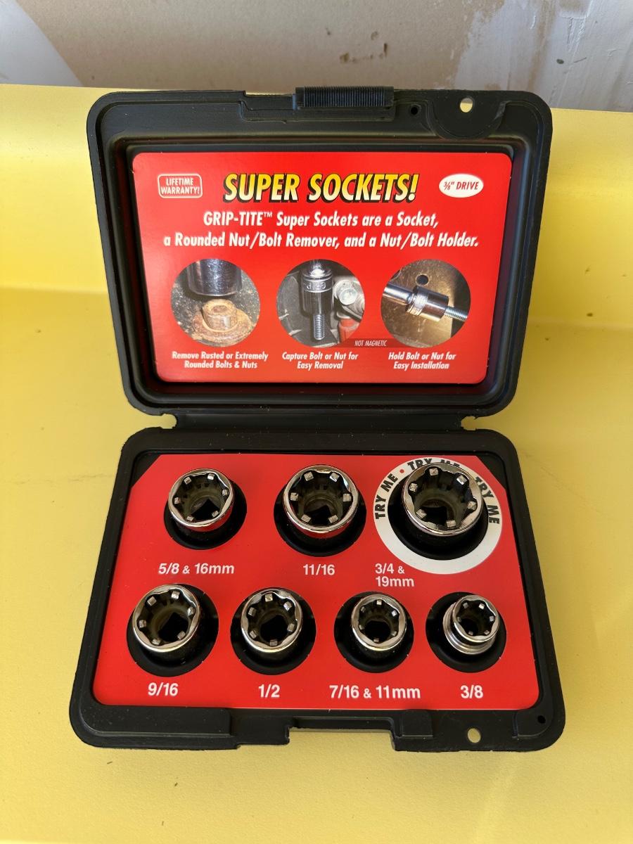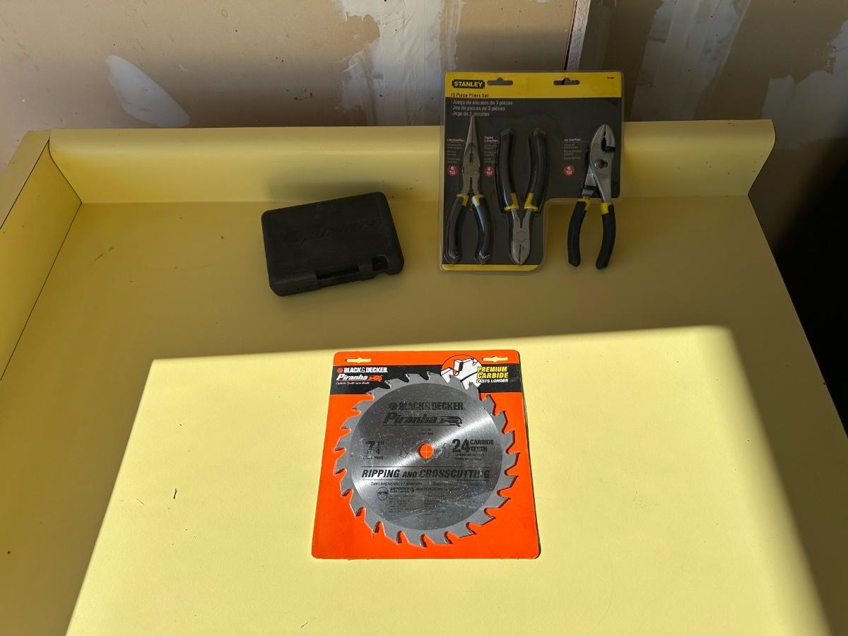 GRIP-TITE SUPER SOCKETS, NEW 7 1/4 SAW BLADE AND NEW 3 PC PLIER SET