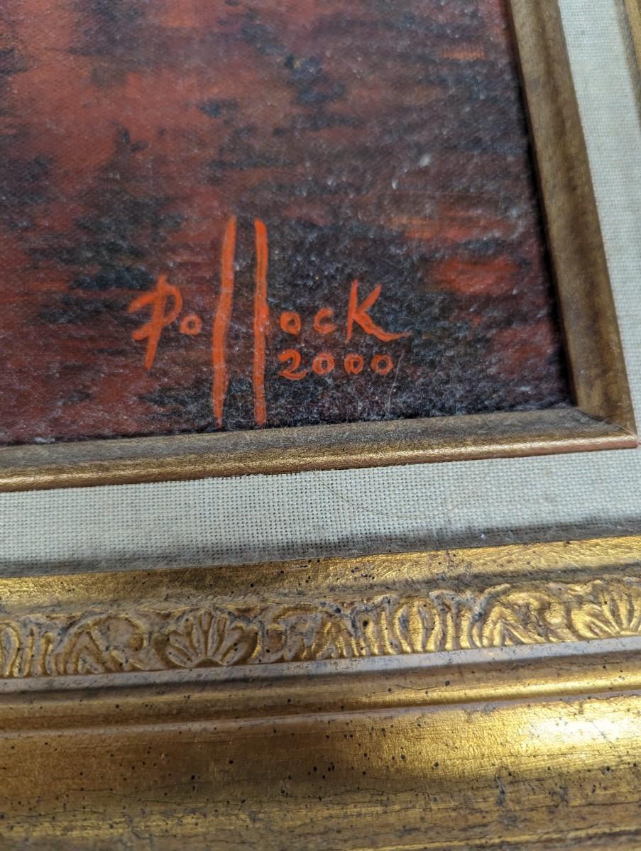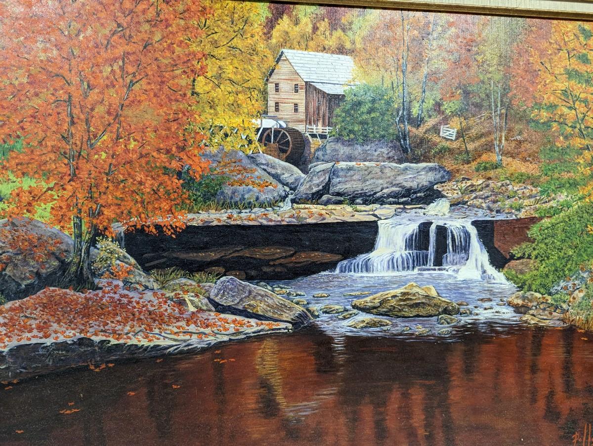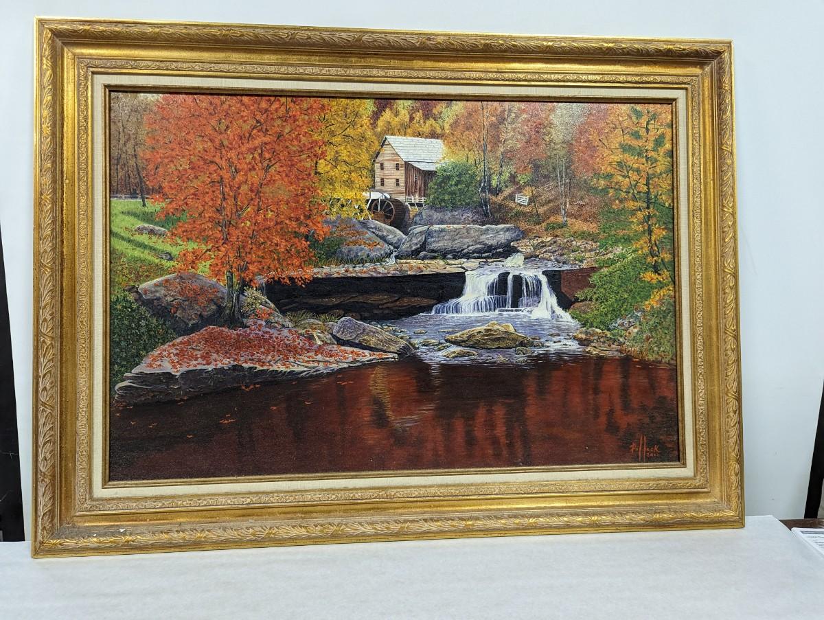 Original Framed Art Grist Mill and Waterfall on Canvas Signed Pollock 44" x 32"