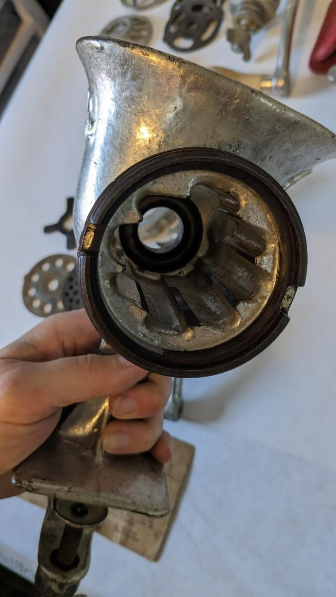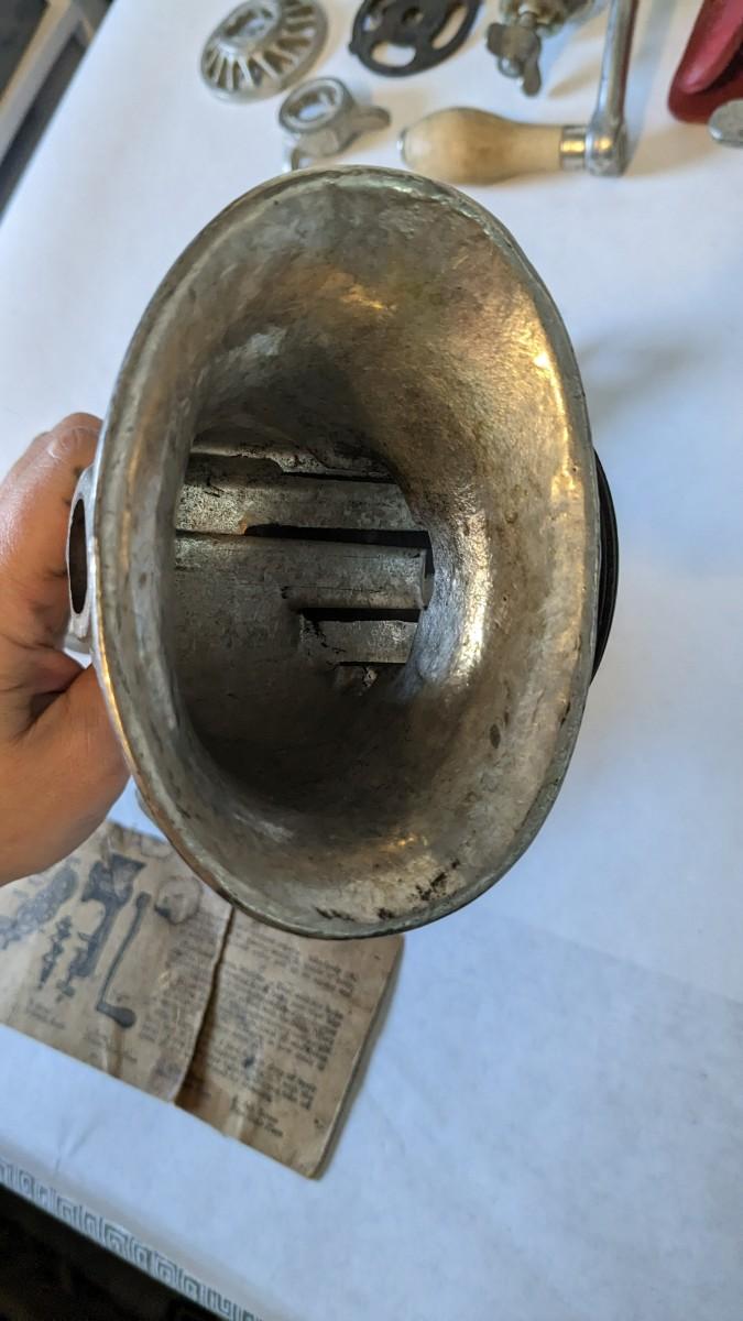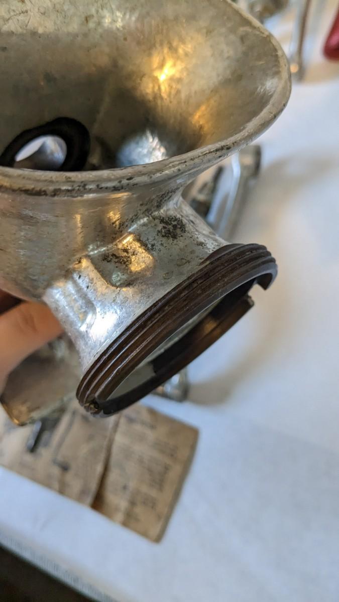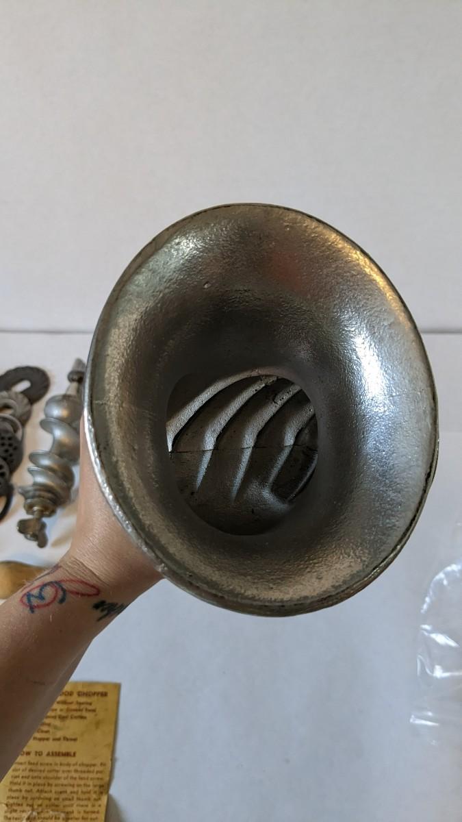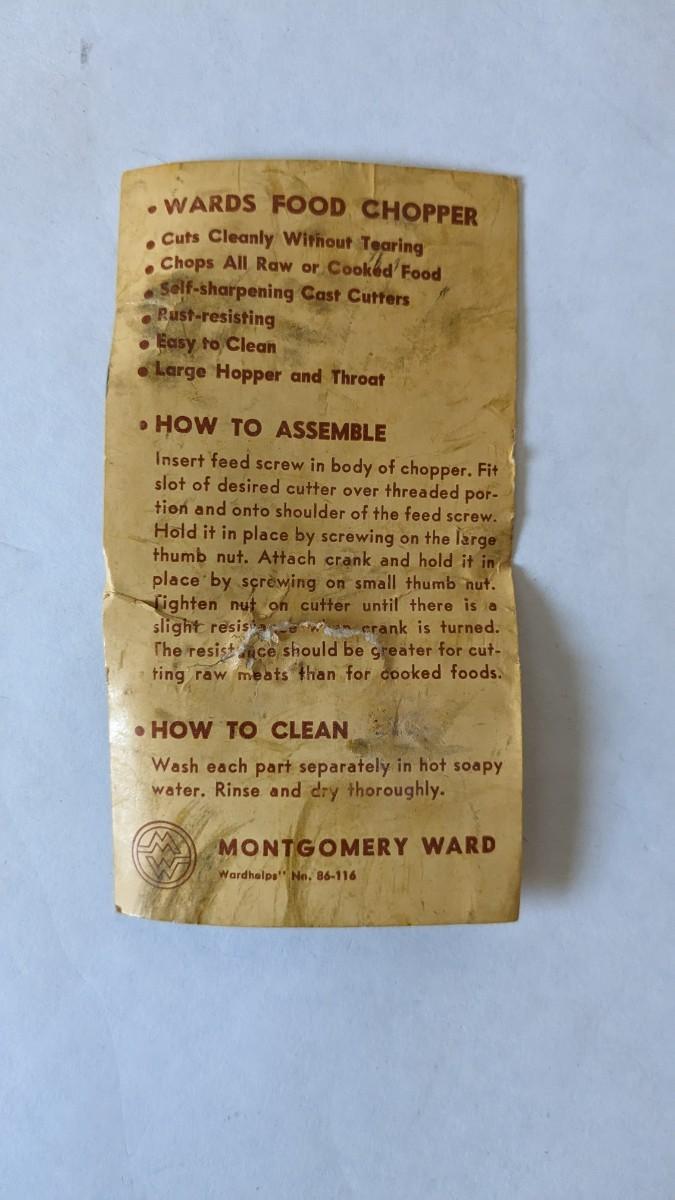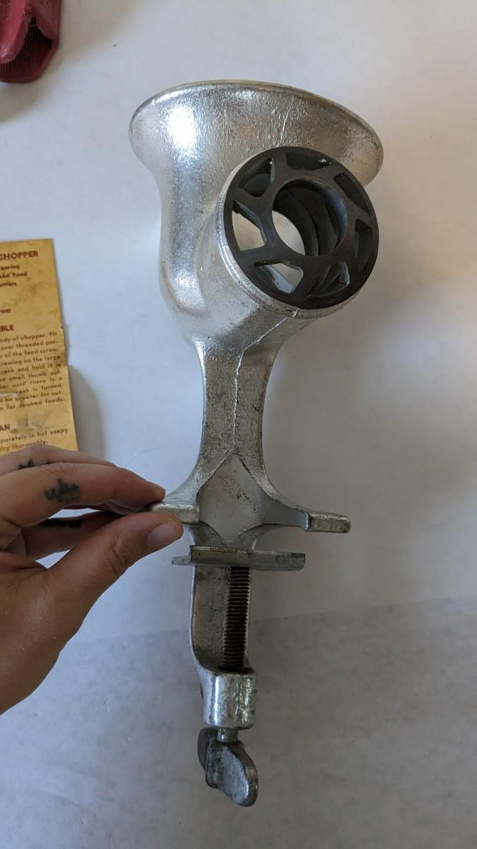 Two excellent antique grinders in fully functional condition including Griswold #1112 and Wards 10" with all attachments as well as original paperwork. Both pieces are in the best condition this cataloger has seen. The Wards food chopper is perfect for a lot of current homesteading uses.