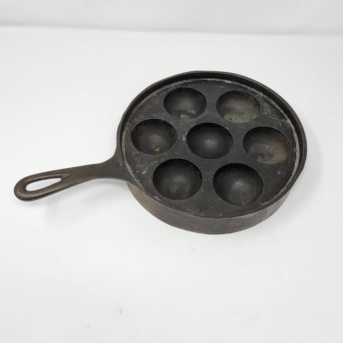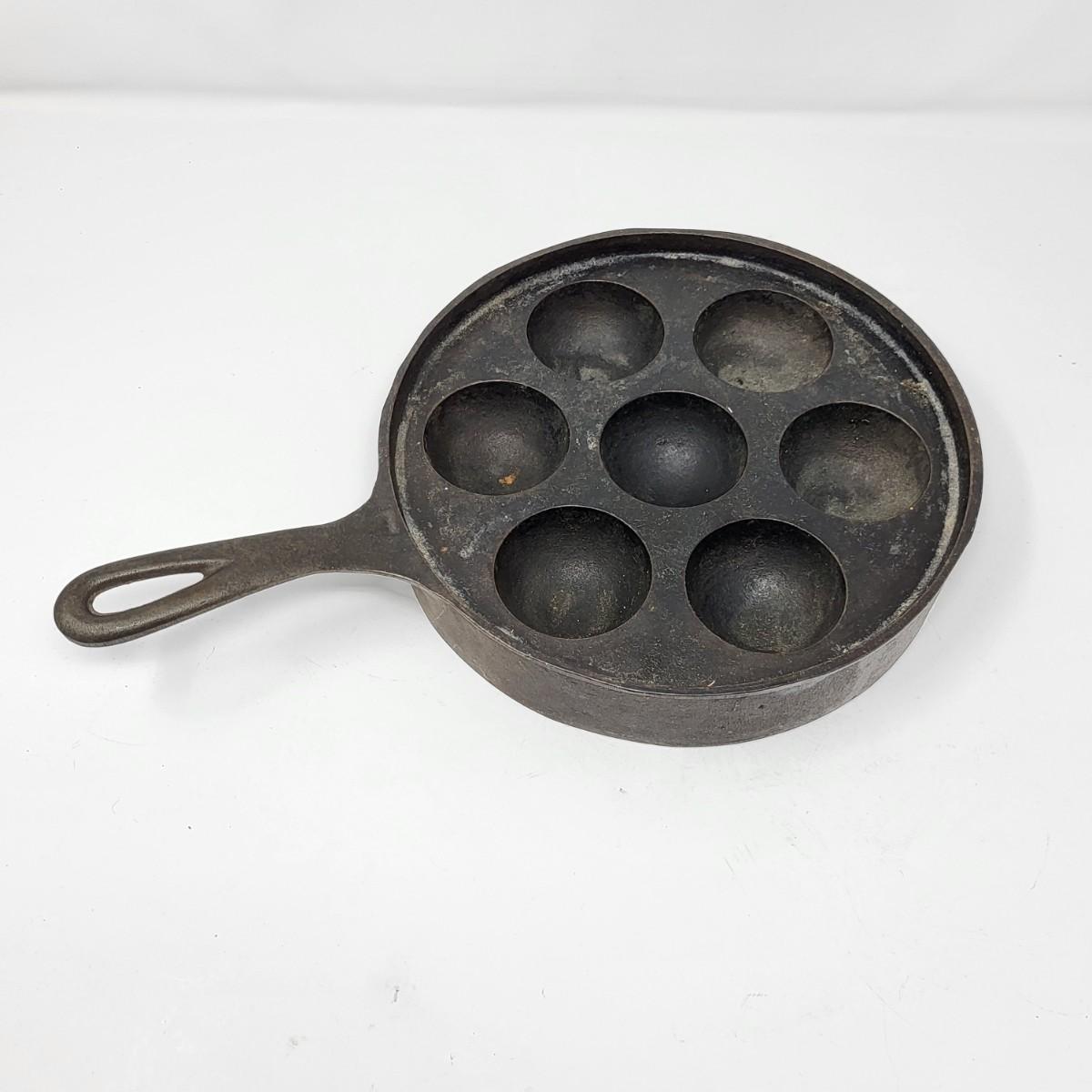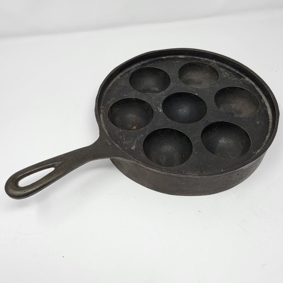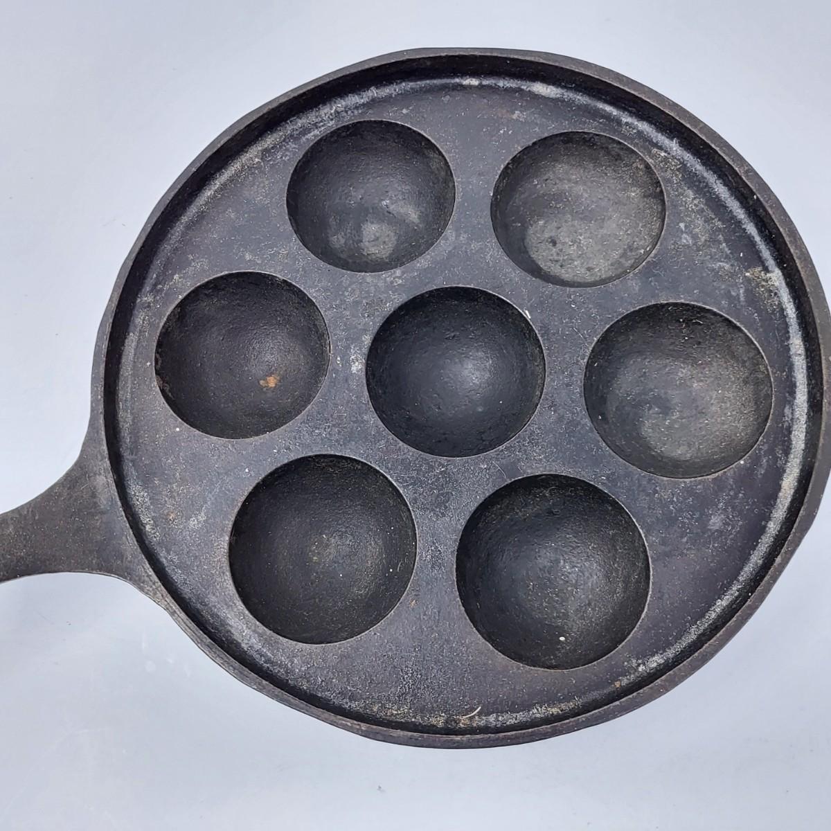 Vintage, 7 section cast iron egg/popover pan with handle made by Griswold.