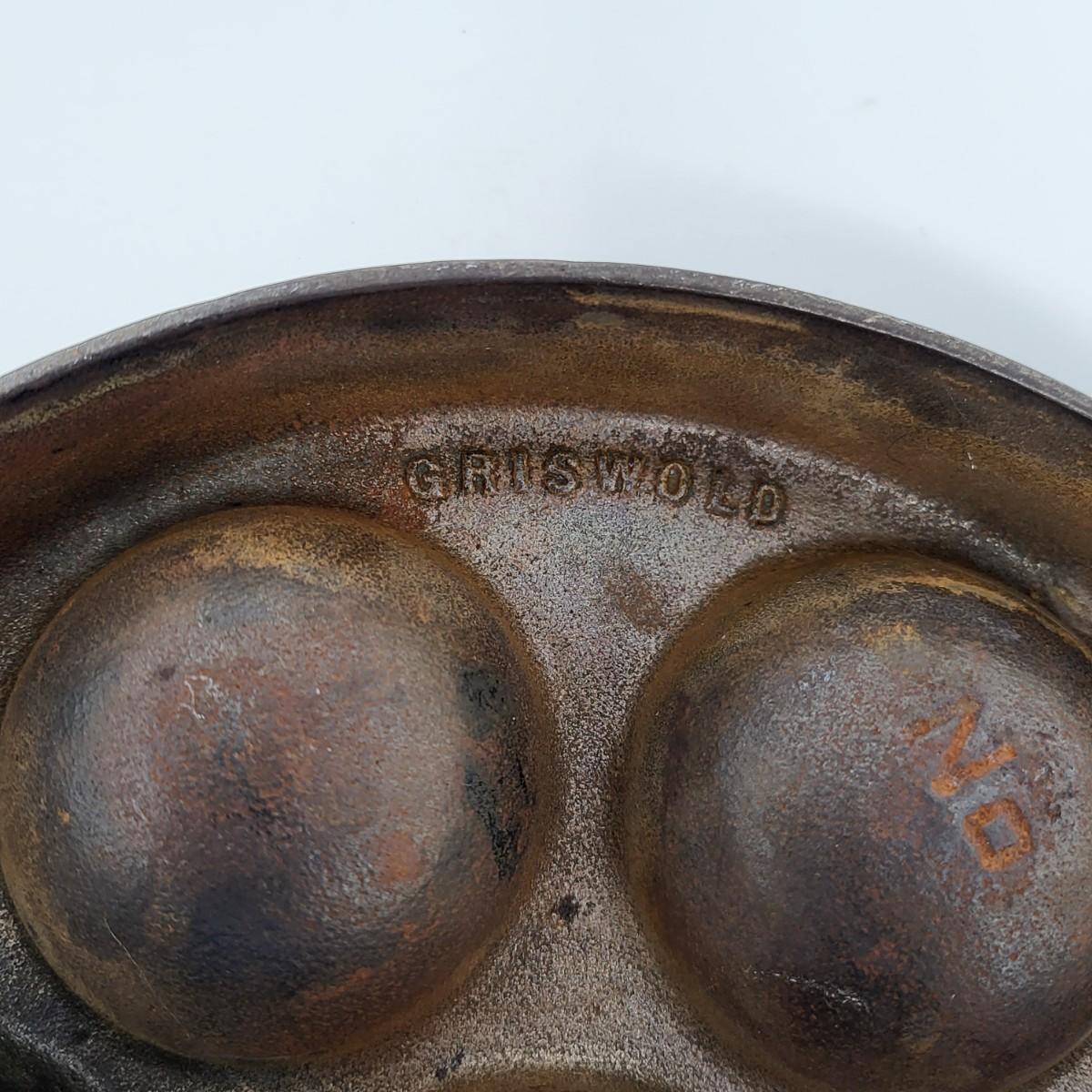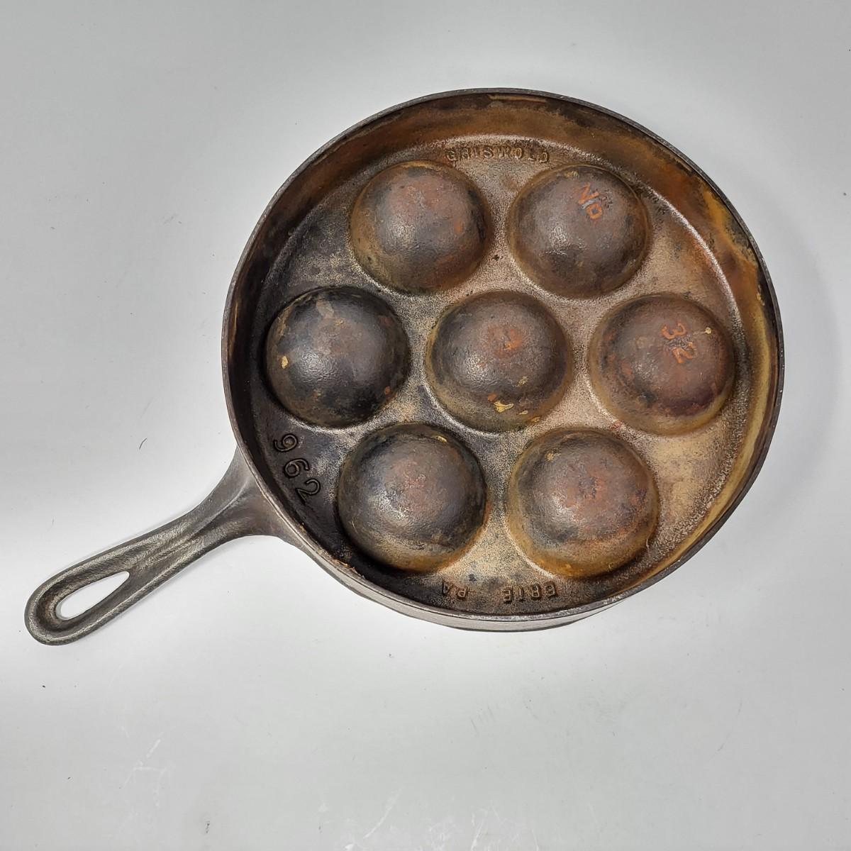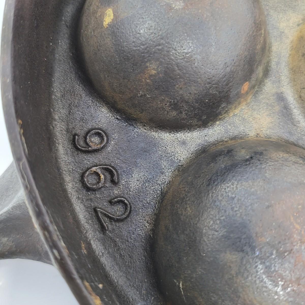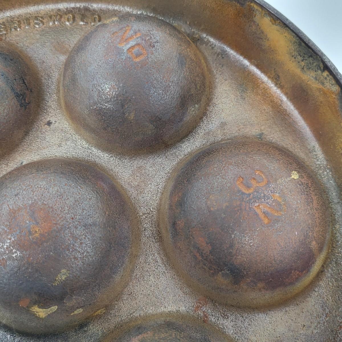 Vintage, 7 section cast iron egg/popover pan with handle made by Griswold.