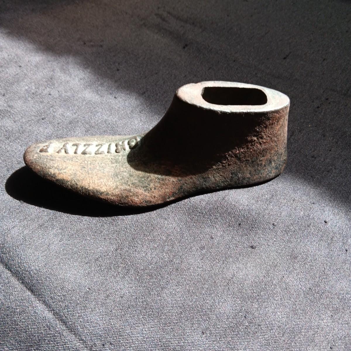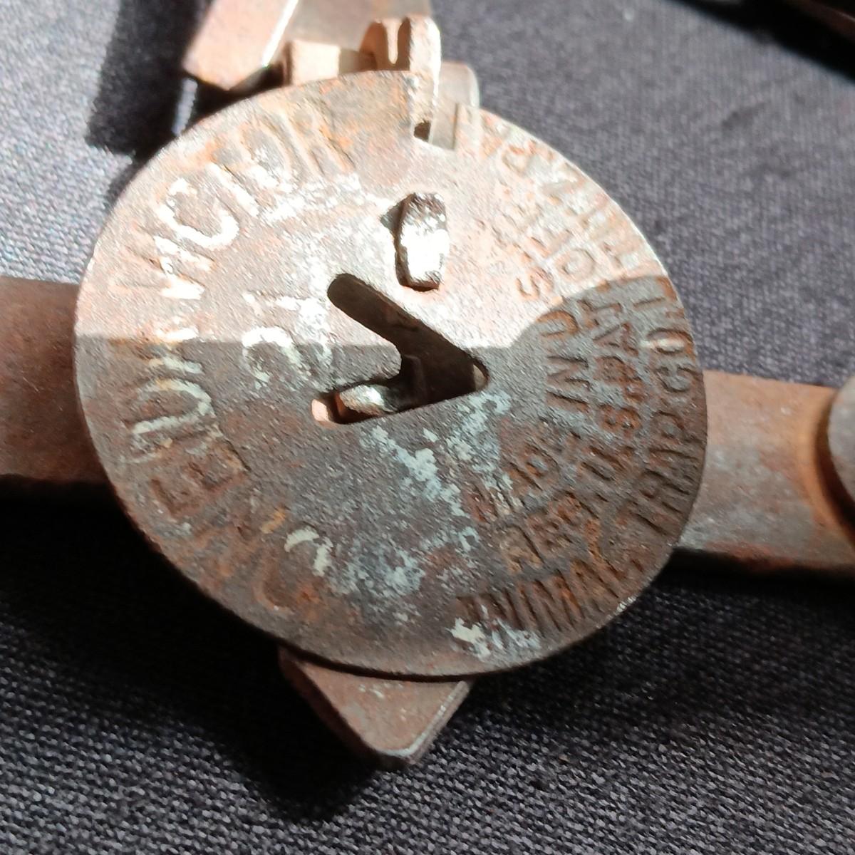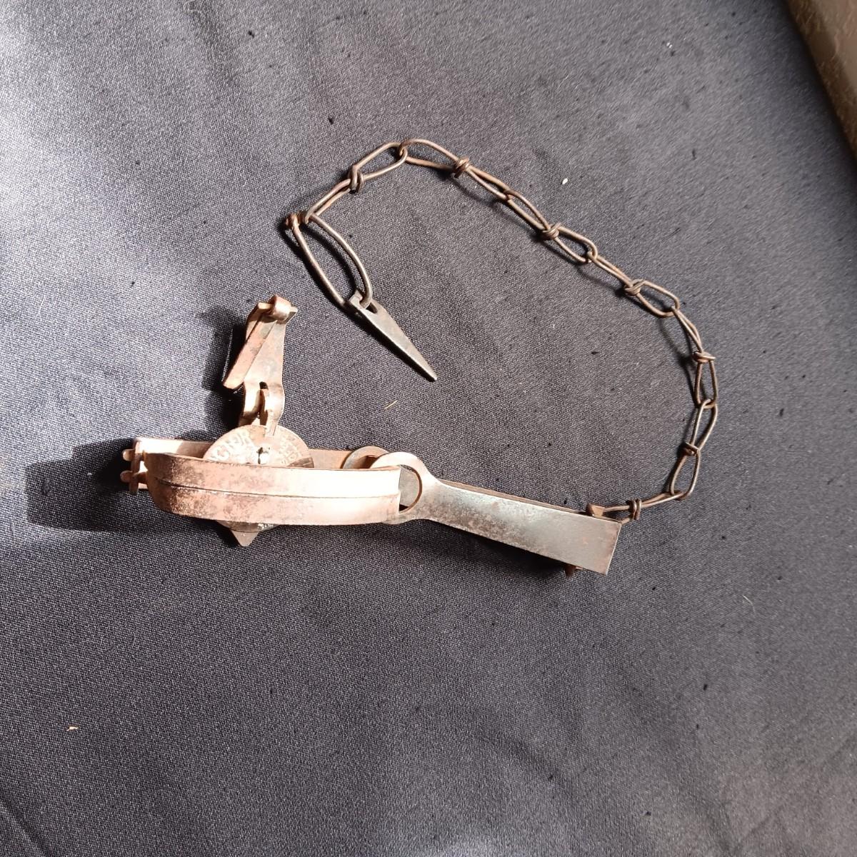 GRIZZLY CAST IRON SHOE FORM AND AN OLD ANIMAL TRAP