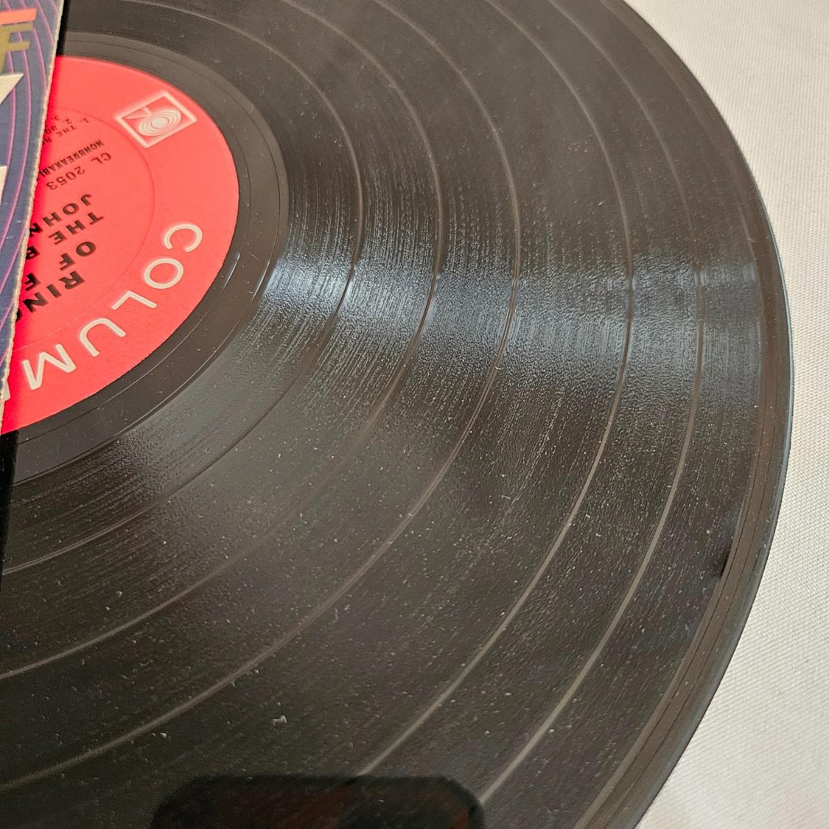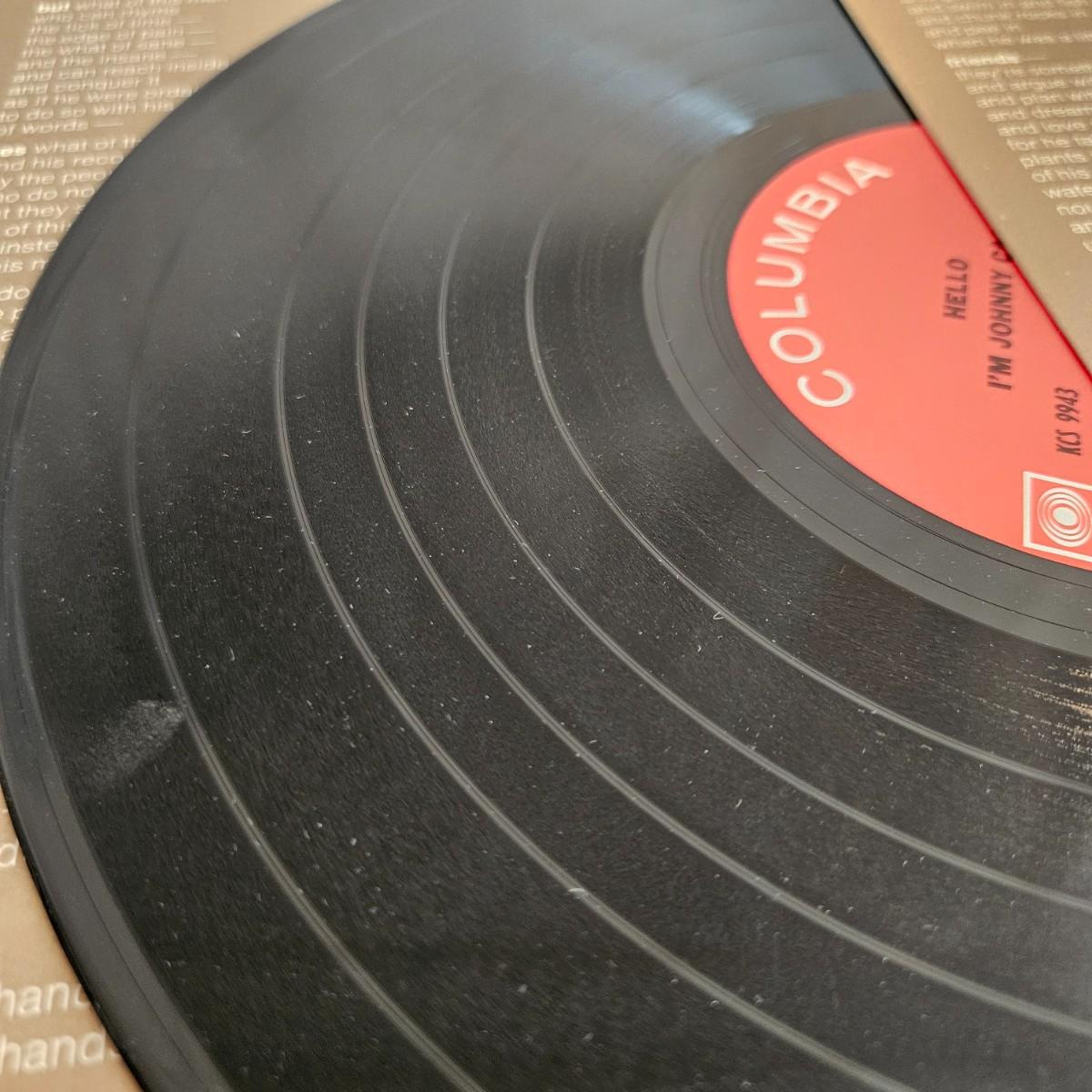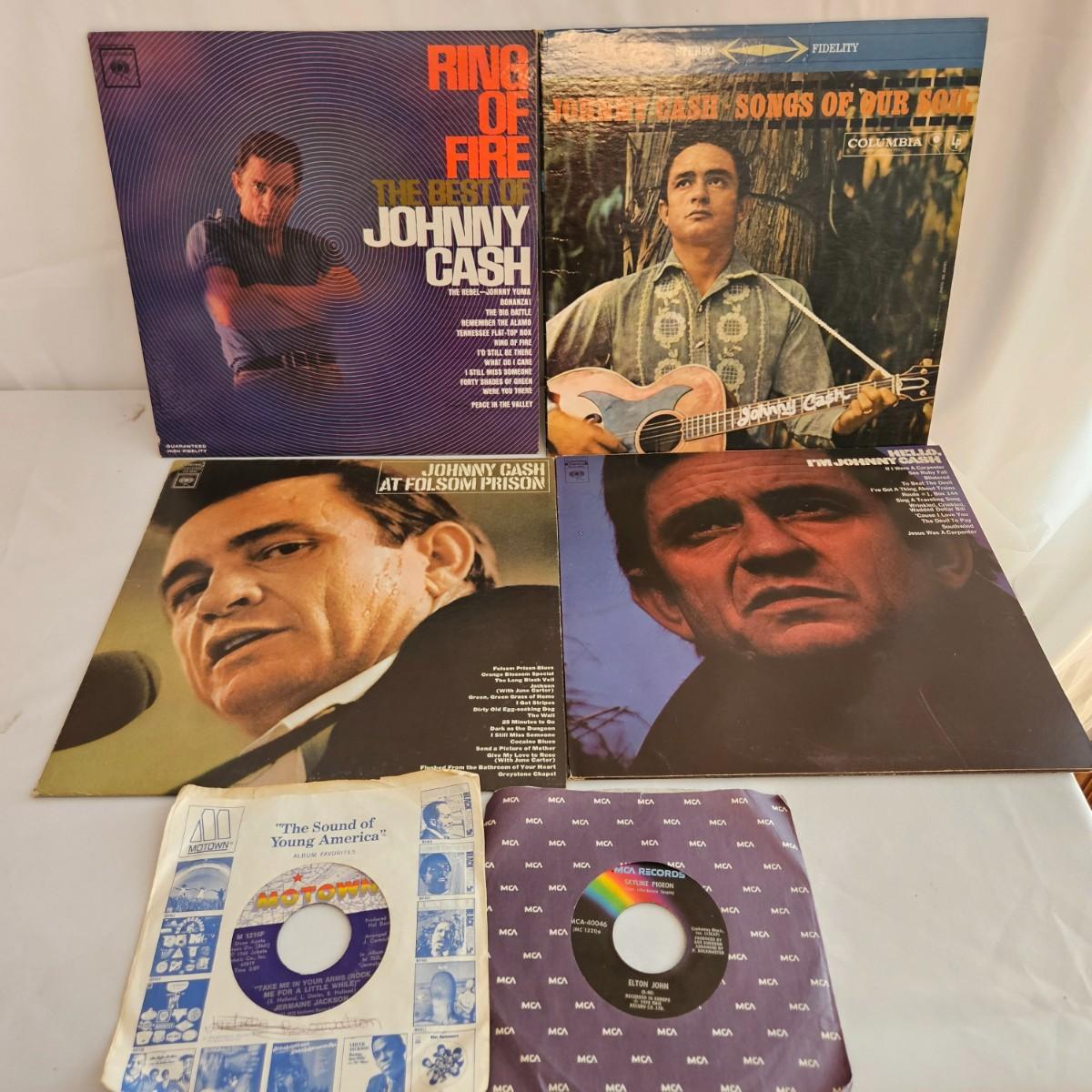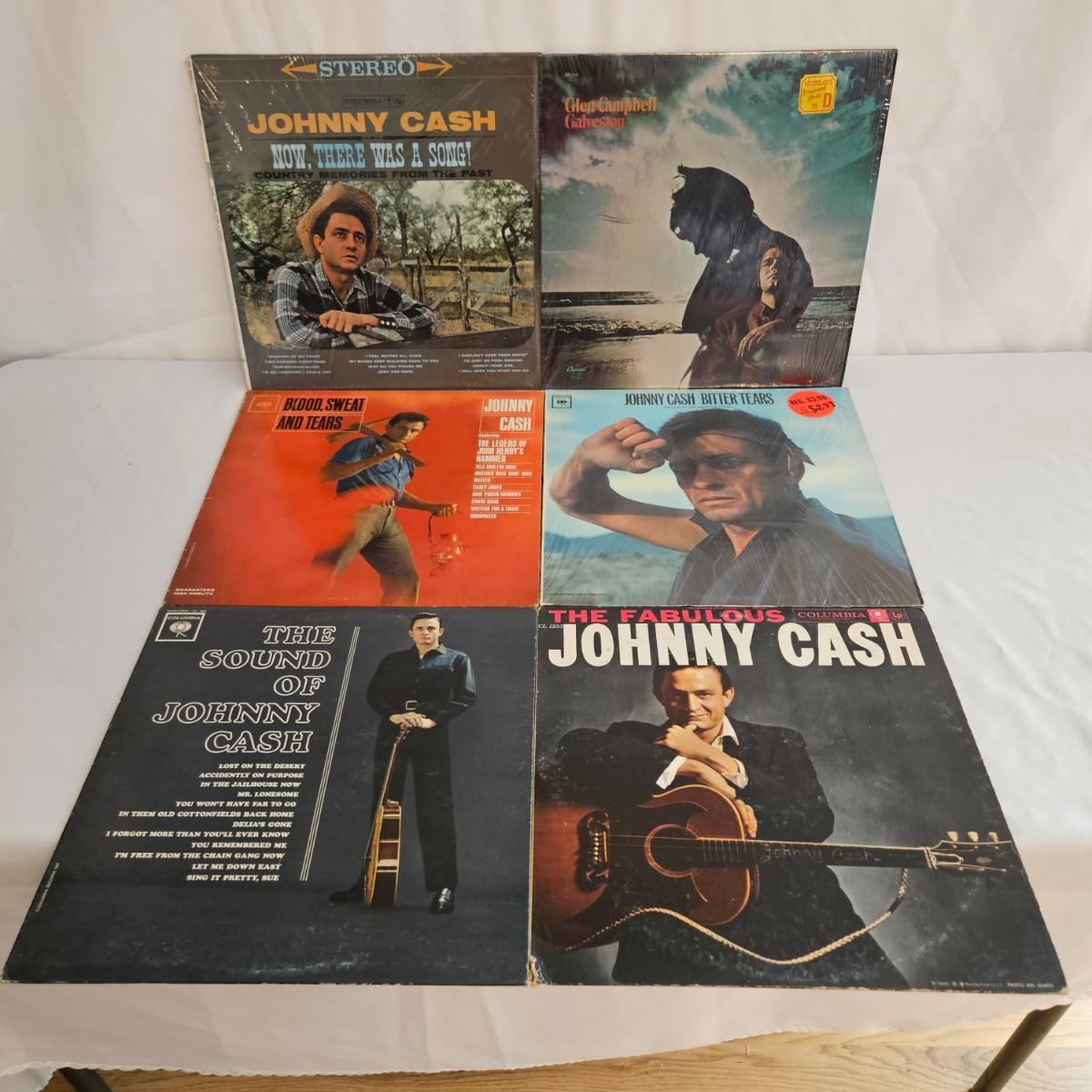 A Crosley turntable that powered on when plugged in. It is made of engineered wood with a faux wood veneer and measures approximately 17 5" x 14.5" x 7.5"H. Also includes over 25 LP records by artists like Johnny Cash. Tanya Tucker, John Denver and more. A can of Le-Bo record cleaner is also included. All sales are final. No returns or refunds. Please bid accordingly. Shipping available