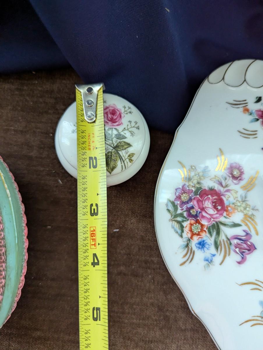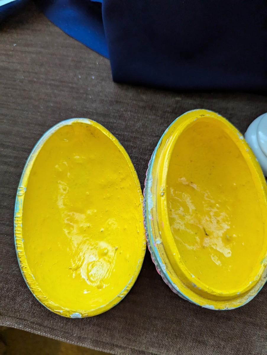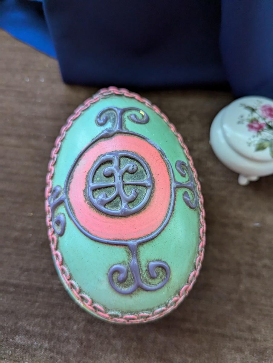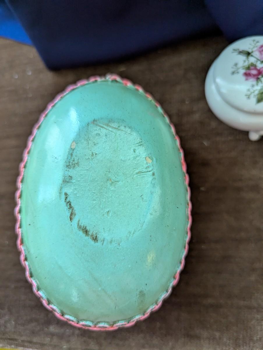 Vintage 1960-70's Large Decorative Egg Container, Blue and Pink. Small Porcelain Trinket Box, Vintage Thames Japan Porcelain Dish With Lid 52/488. Porcelain Bowl with lid Derwood-6 With Beautiful Painted Bird and Flowers on it.