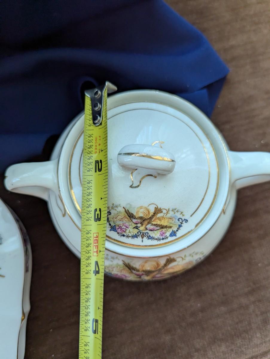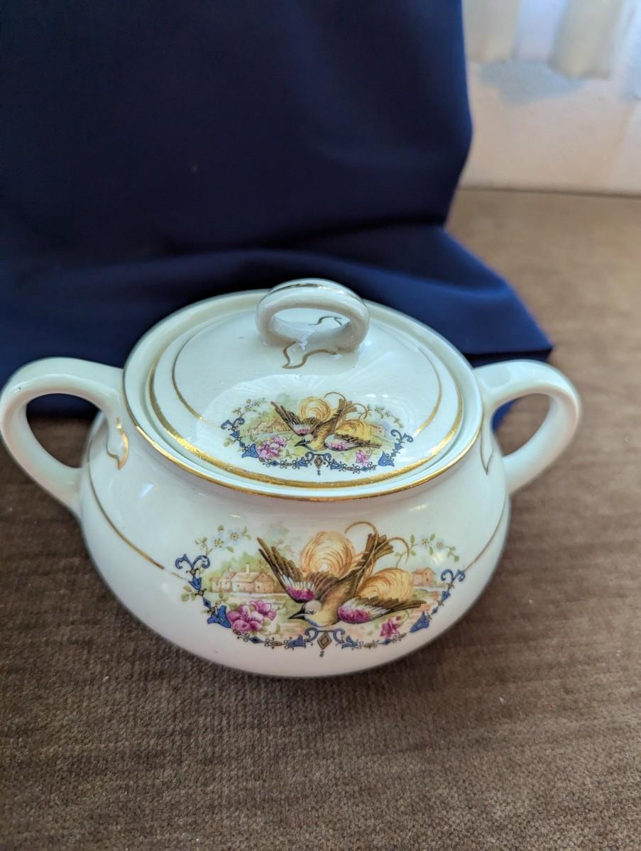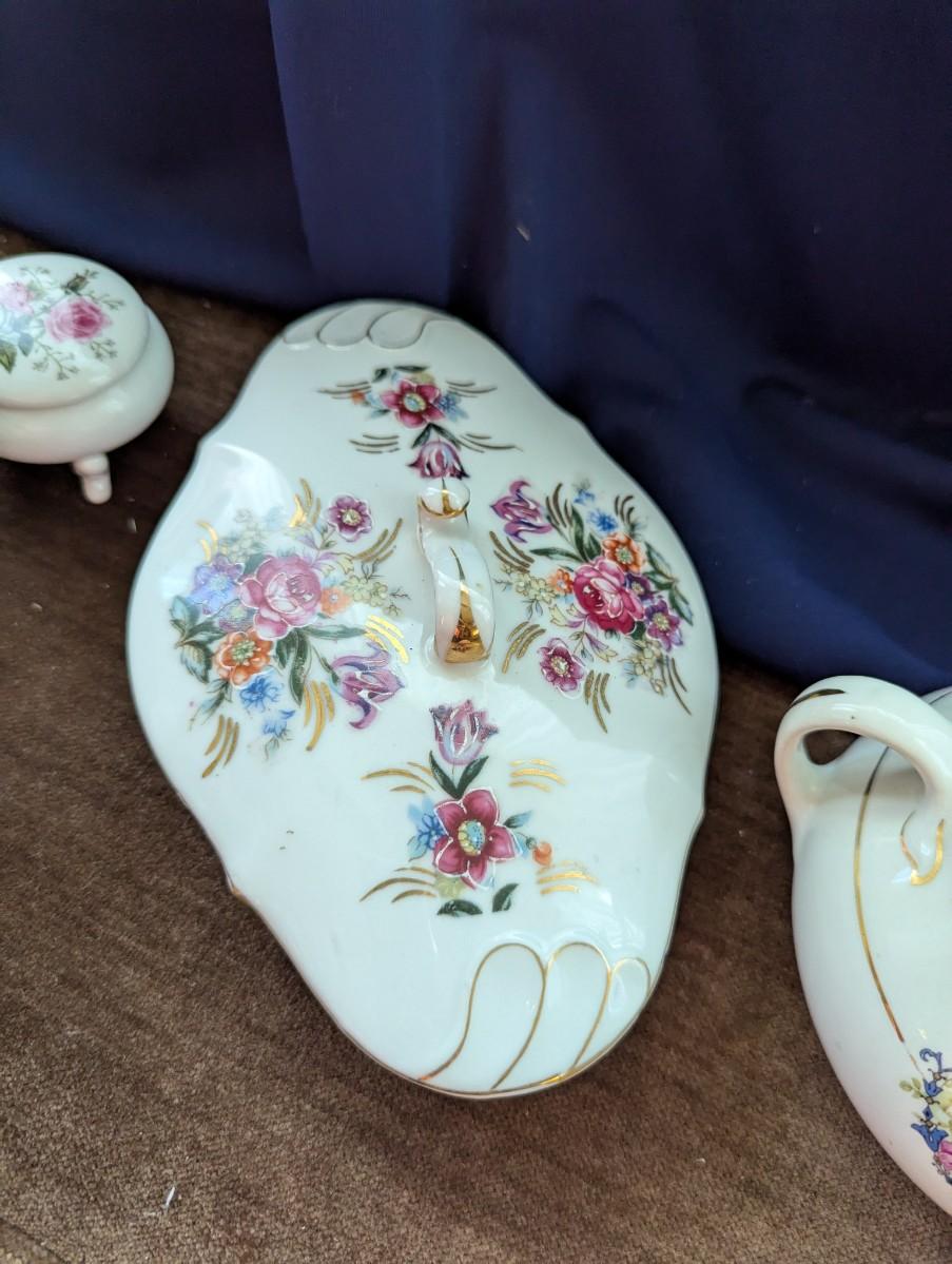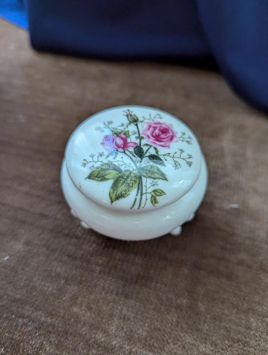 Vintage 1960-70's Large Decorative Egg Container, Blue and Pink. Small Porcelain Trinket Box, Vintage Thames Japan Porcelain Dish With Lid 52/488. Porcelain Bowl with lid Derwood-6 With Beautiful Painted Bird and Flowers on it.