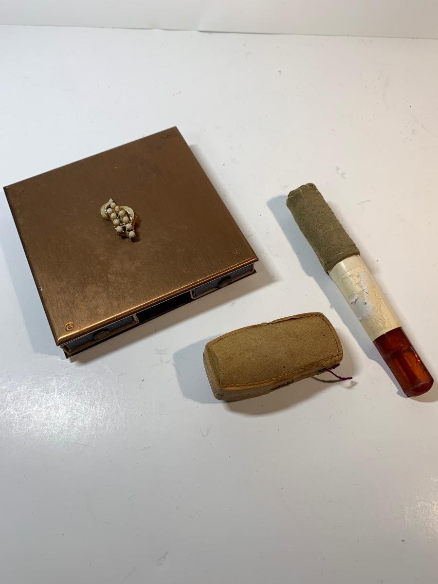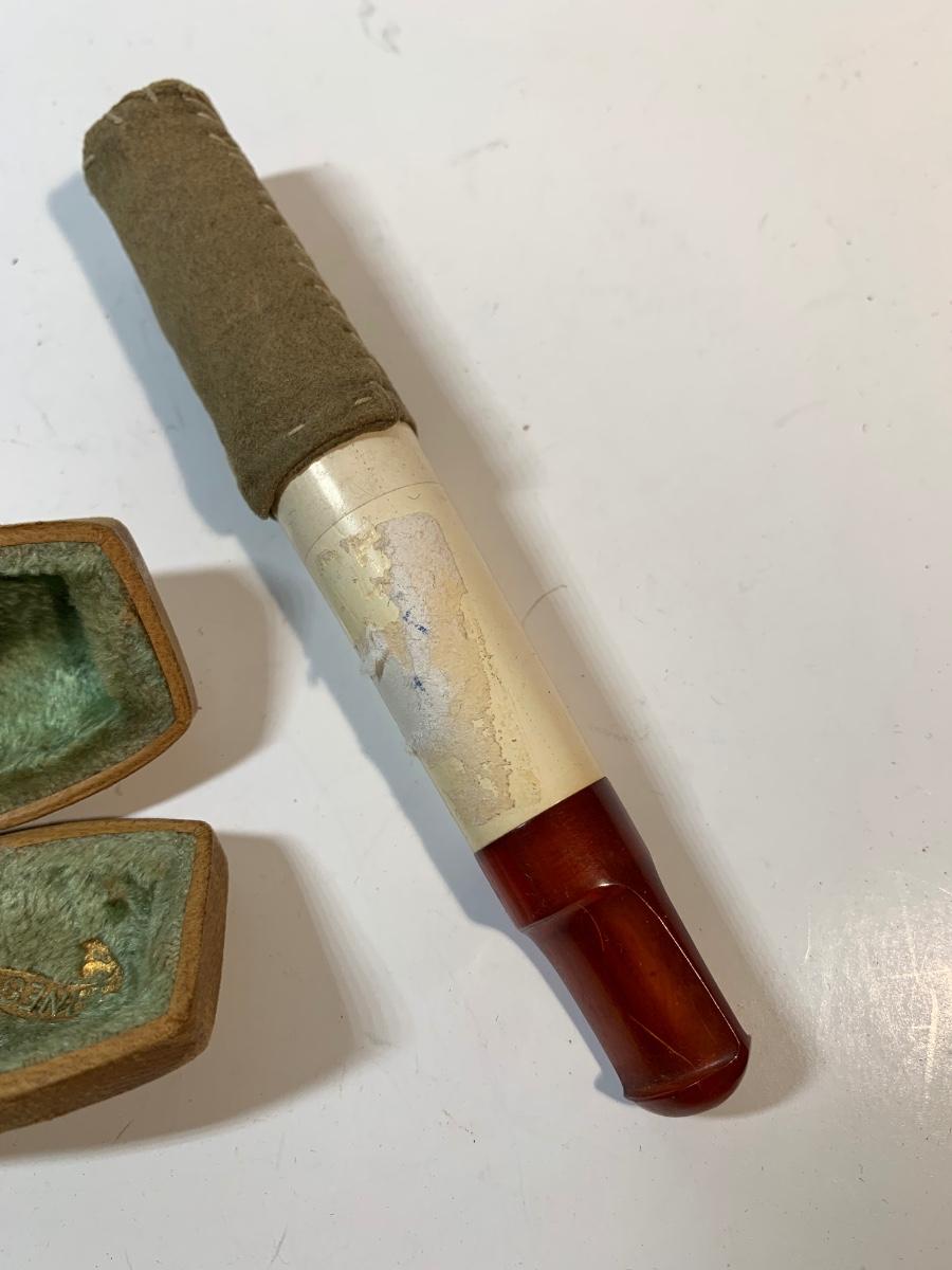 Two cheroot holders and a copper match holder all great quality