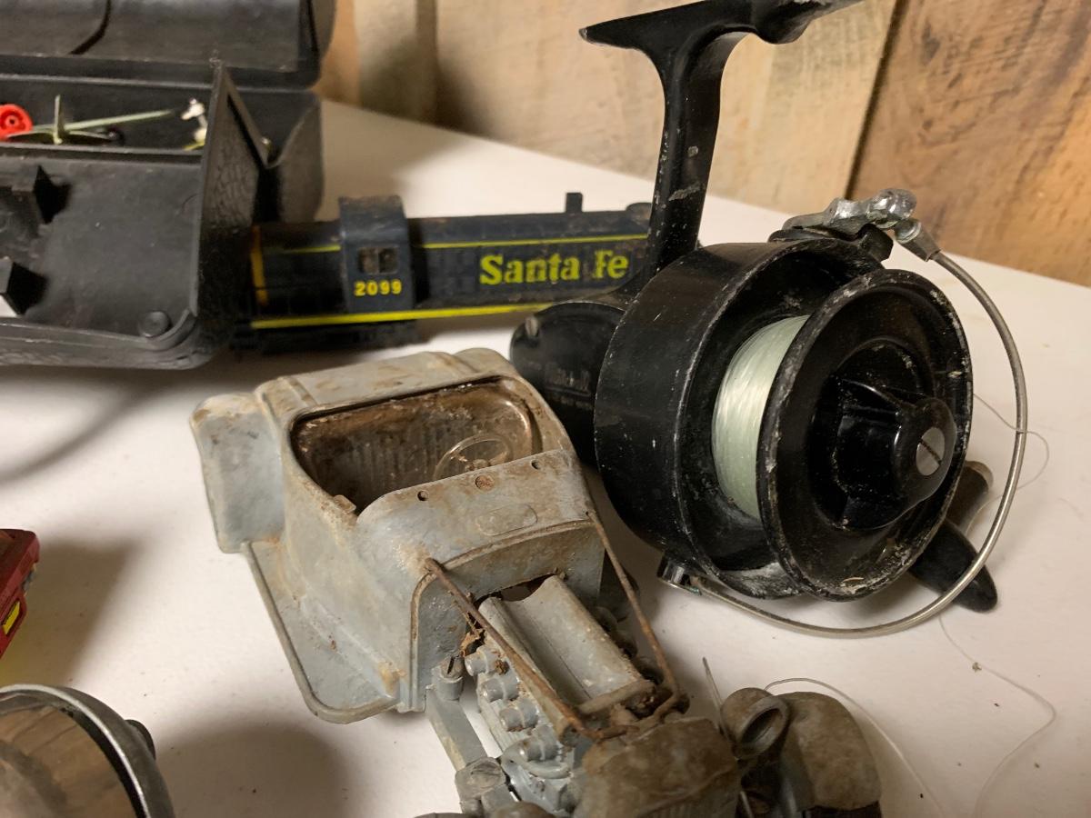 Mitchell’s sea reel plus toy cars etc including matchbox