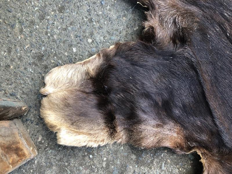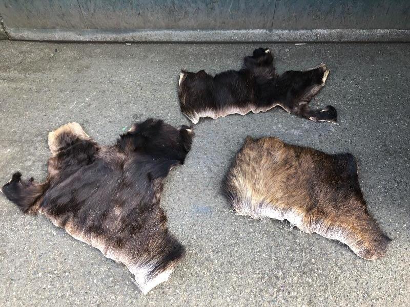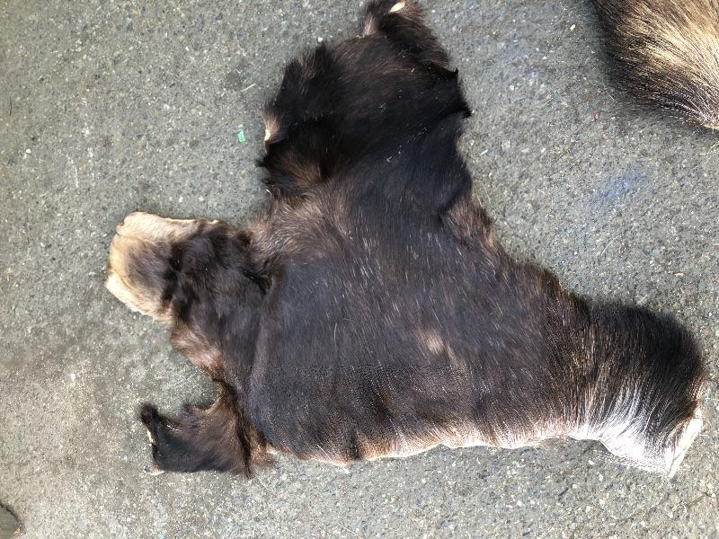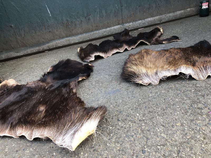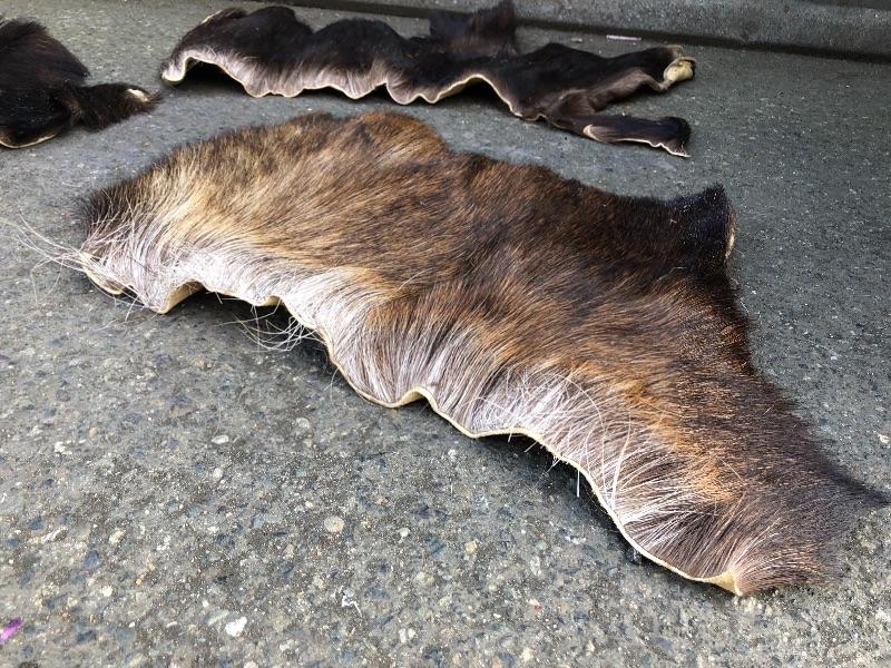 Dimensions of pelts are 29" x 21", 42" x 31", and 36" x 23"