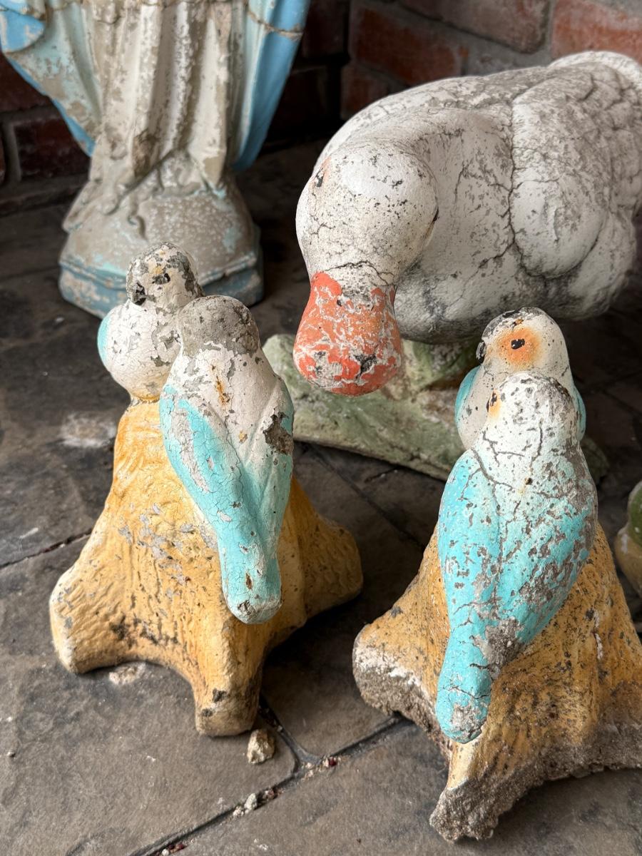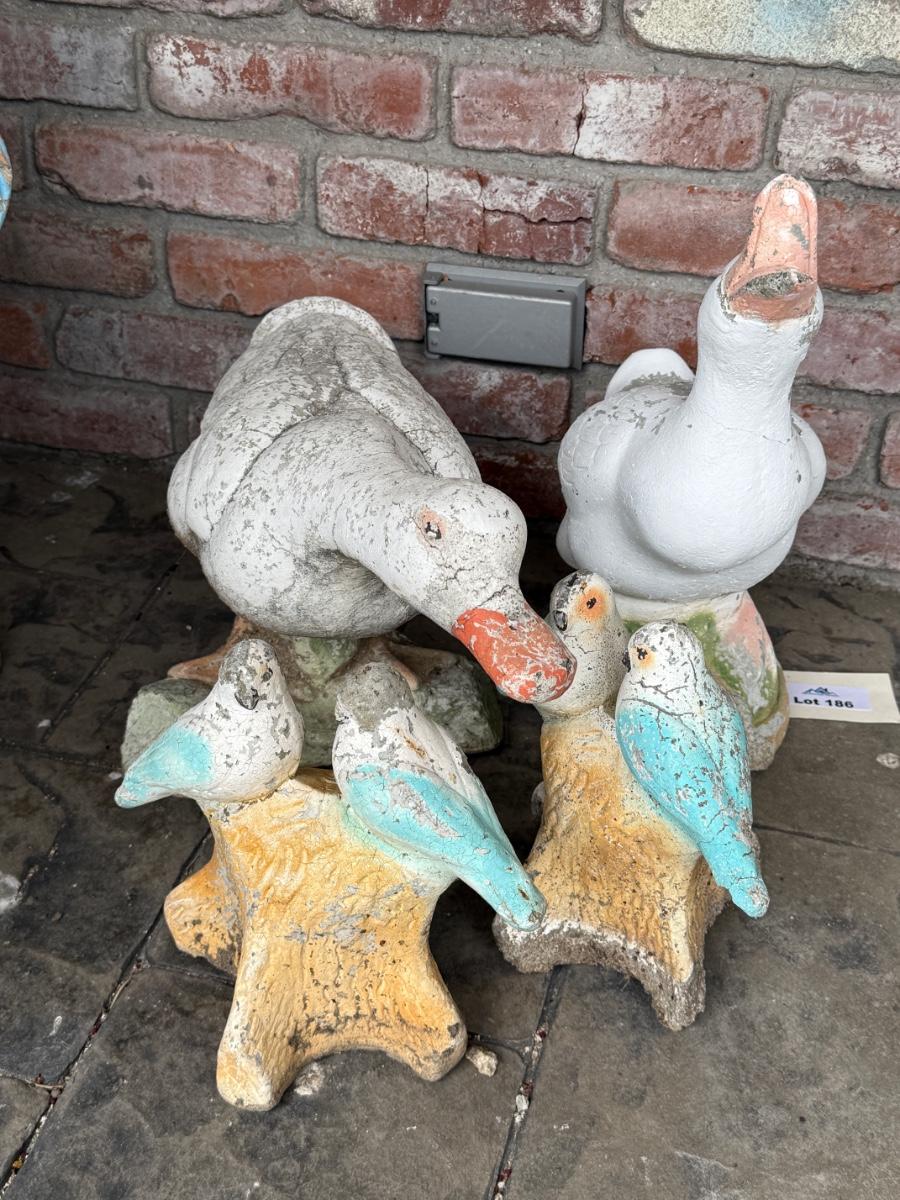 Group of 4 Cement Decor - 2 Ducks & 2 smaller Bird Sets