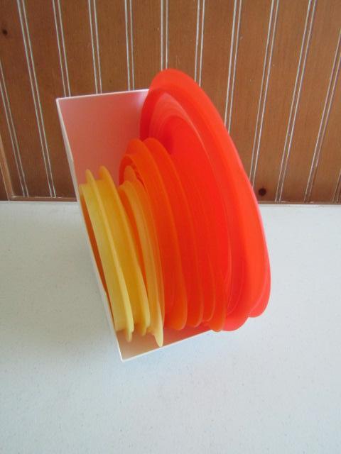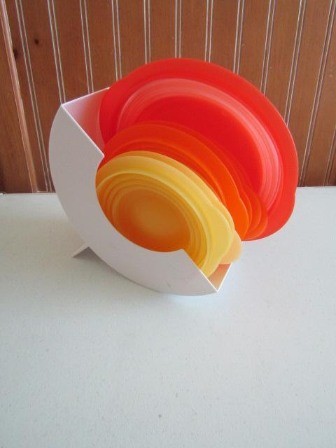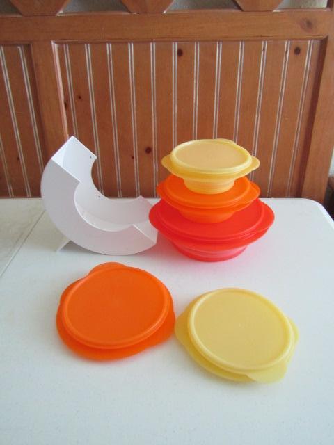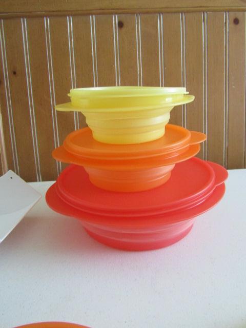 Group of 5 Tupperware Collapsible Bowls- (2) 3 Cup, (2) 4 Cup, (1) 8 1/4 Cup with Holder