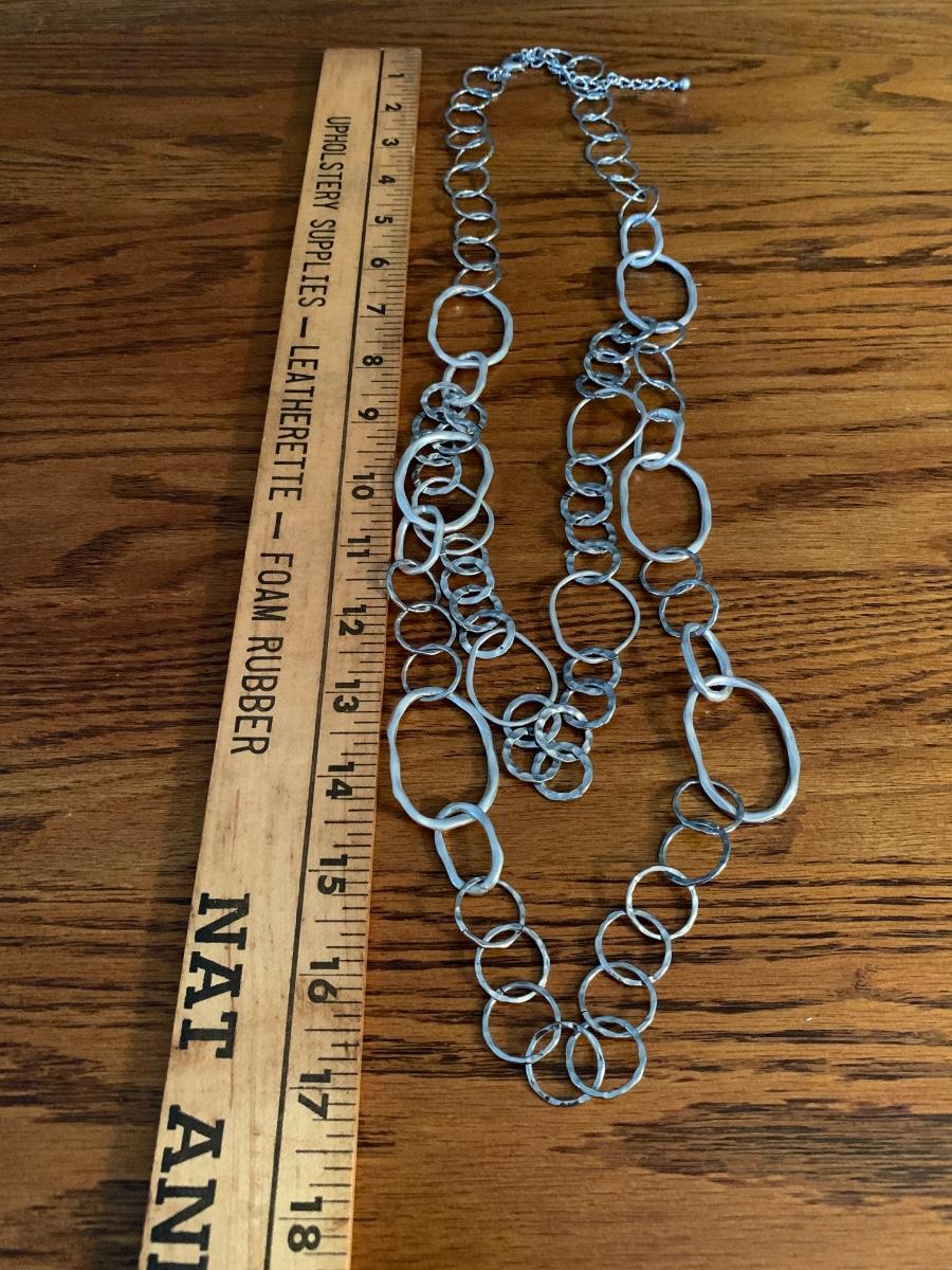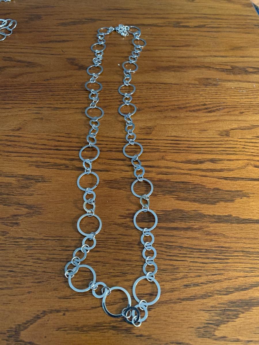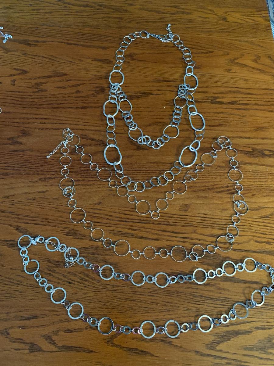 3 silver tone chain necklaces.