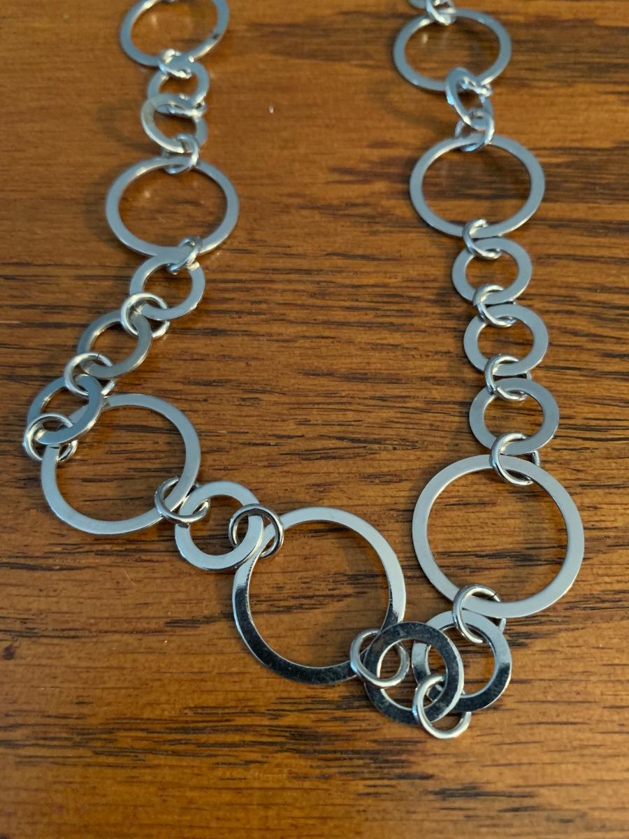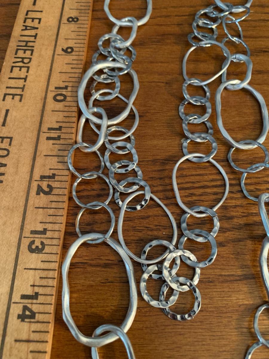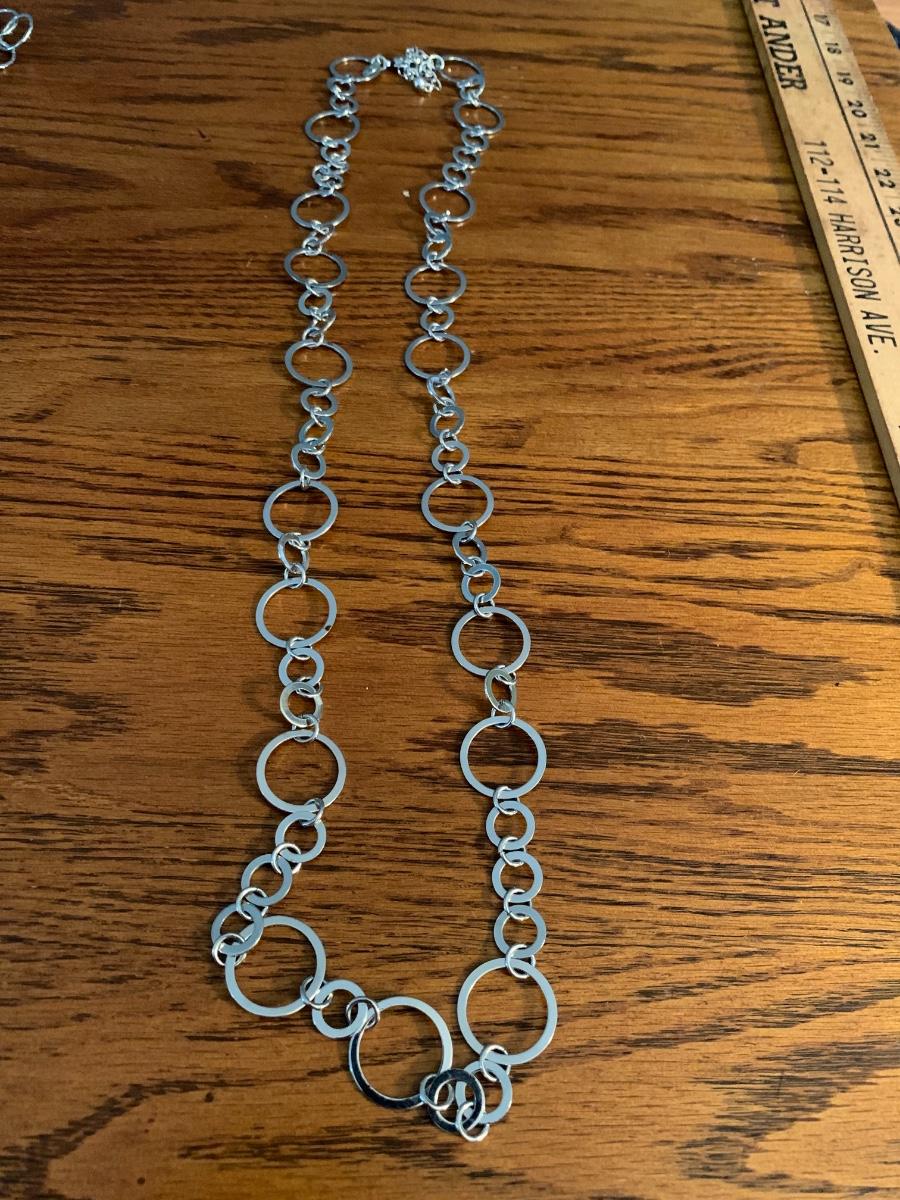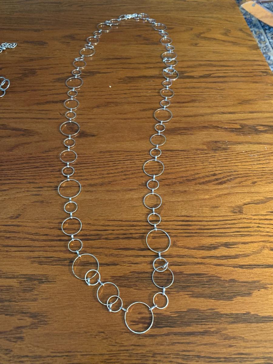 3 silver tone chain necklaces.