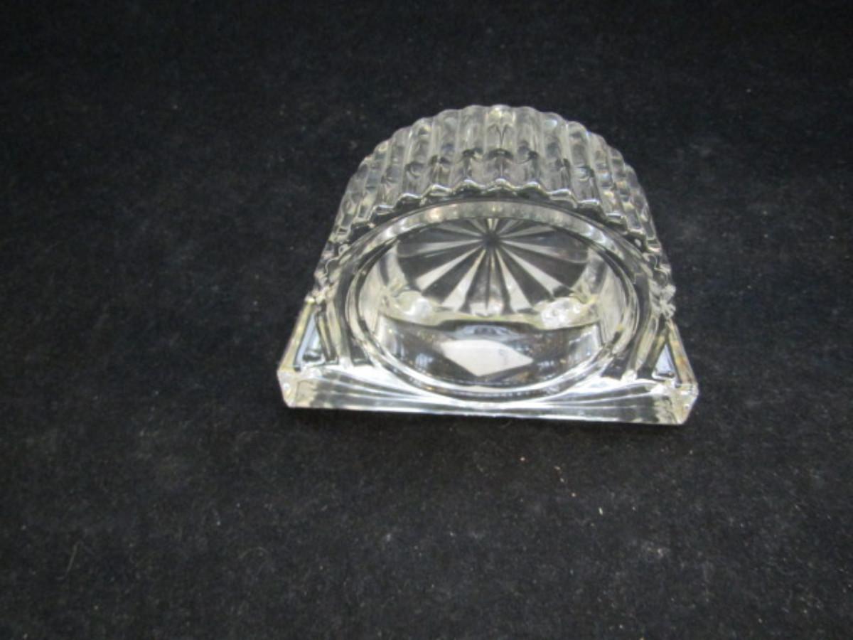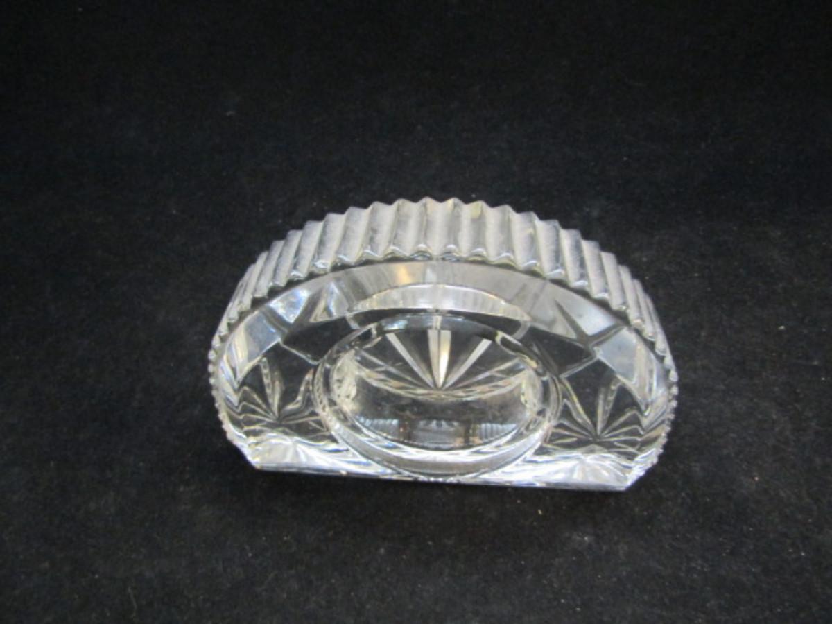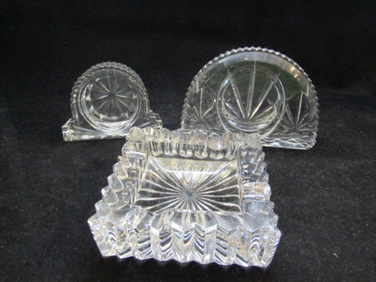 Group of Crystal Items (#185). One ashtray and two casings for table top clocks- one is made by Shannon.
