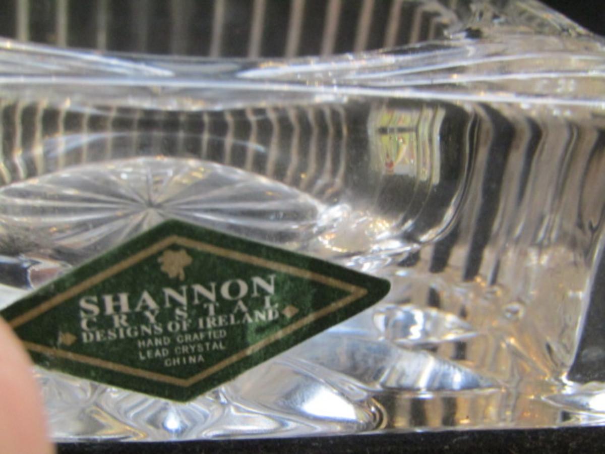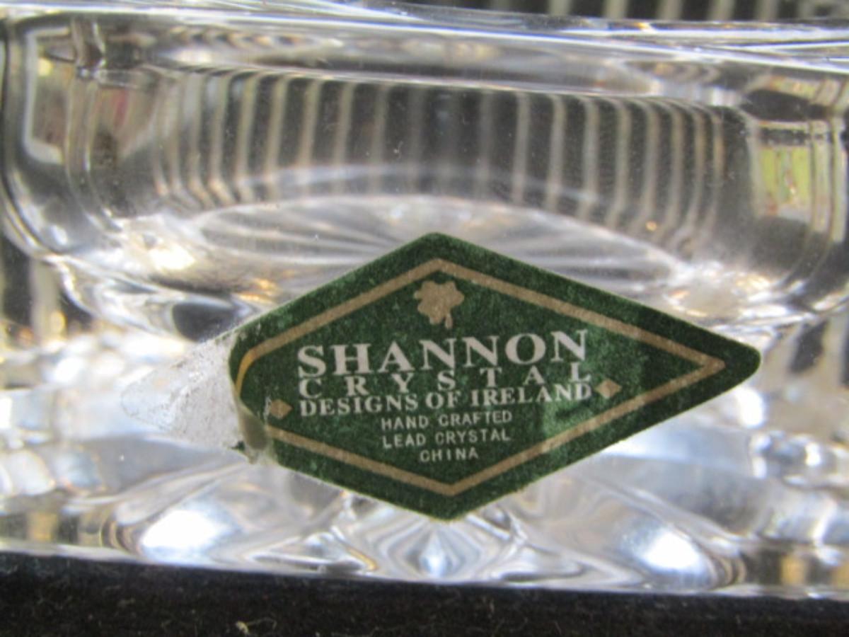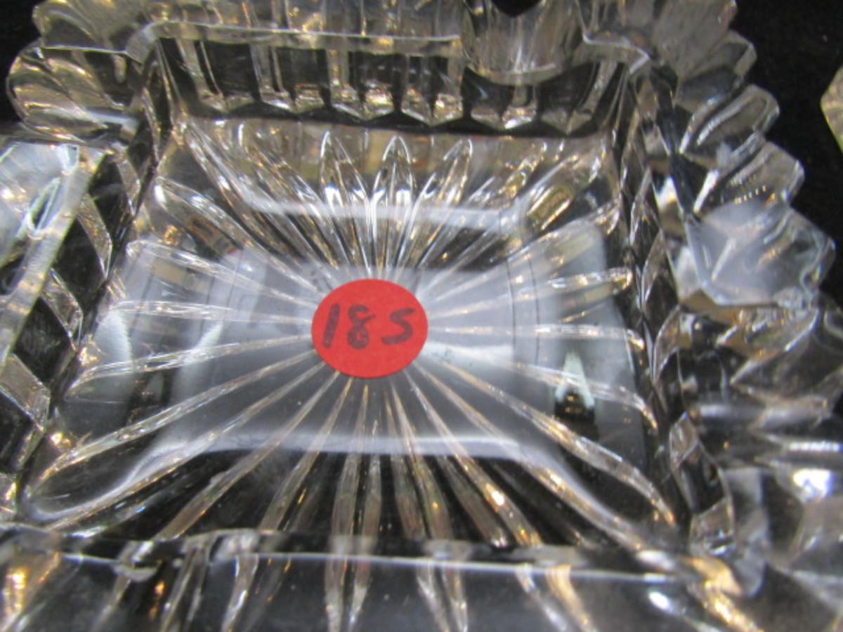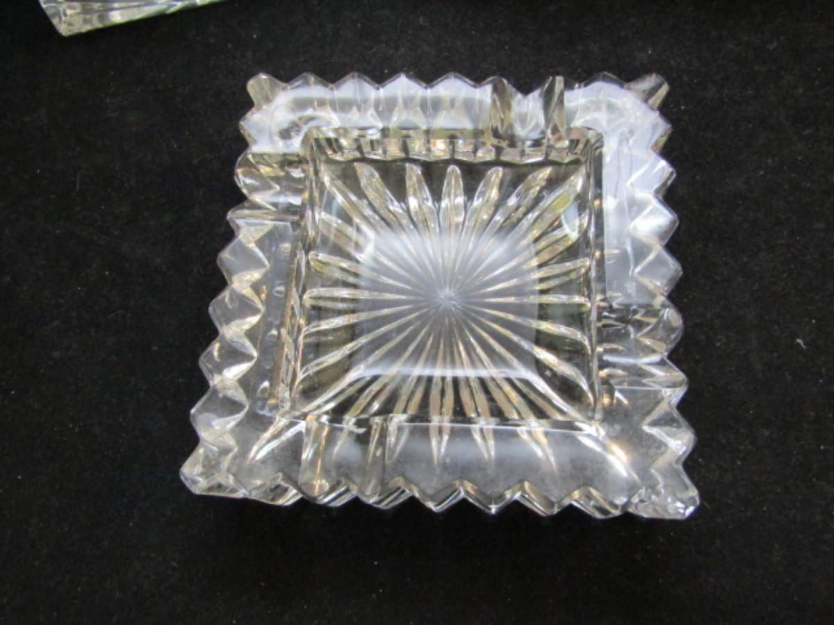 Group of Crystal Items (#185). One ashtray and two casings for table top clocks- one is made by Shannon.