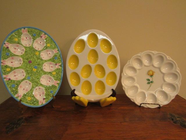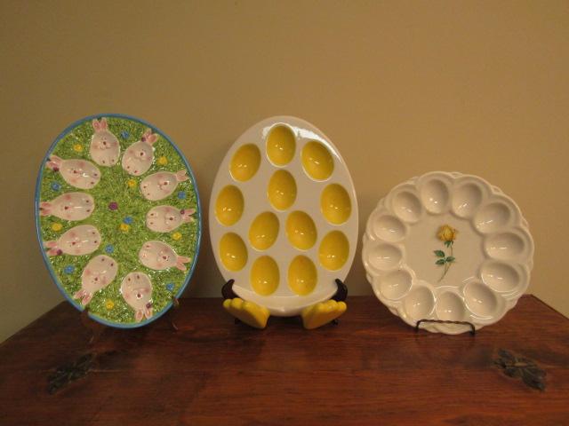 Set of Three Decorative and Whimsical Deviled Egg Platters