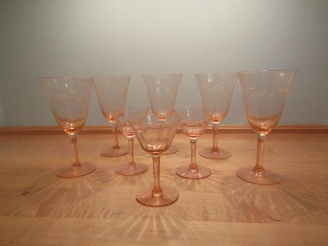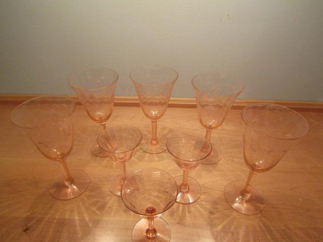 Group of Etched Wine Glasses- 8 Total. Please see pictures.
