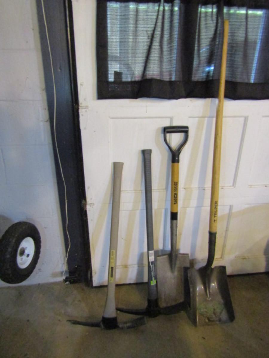 Group of Hand Tools- Shovels and Pick Axes