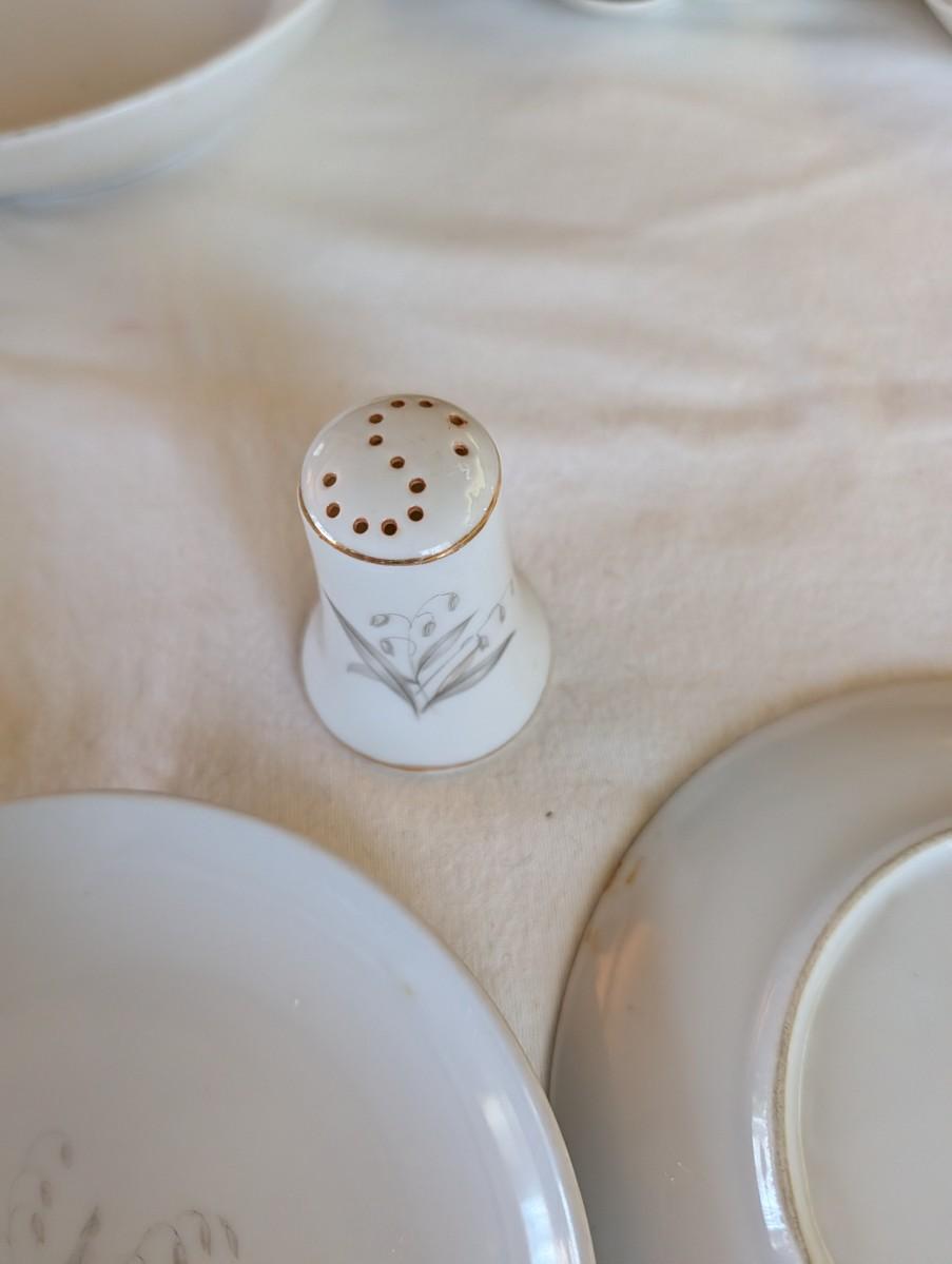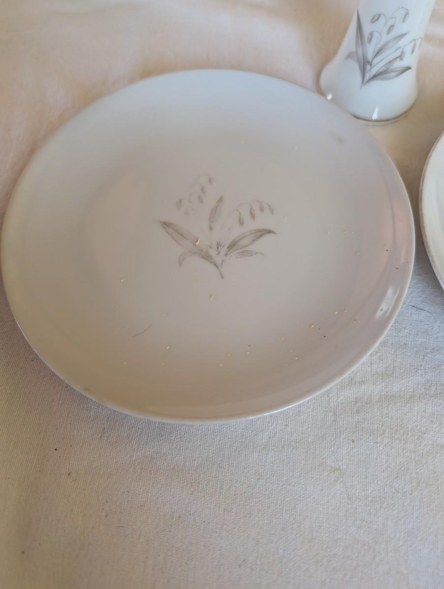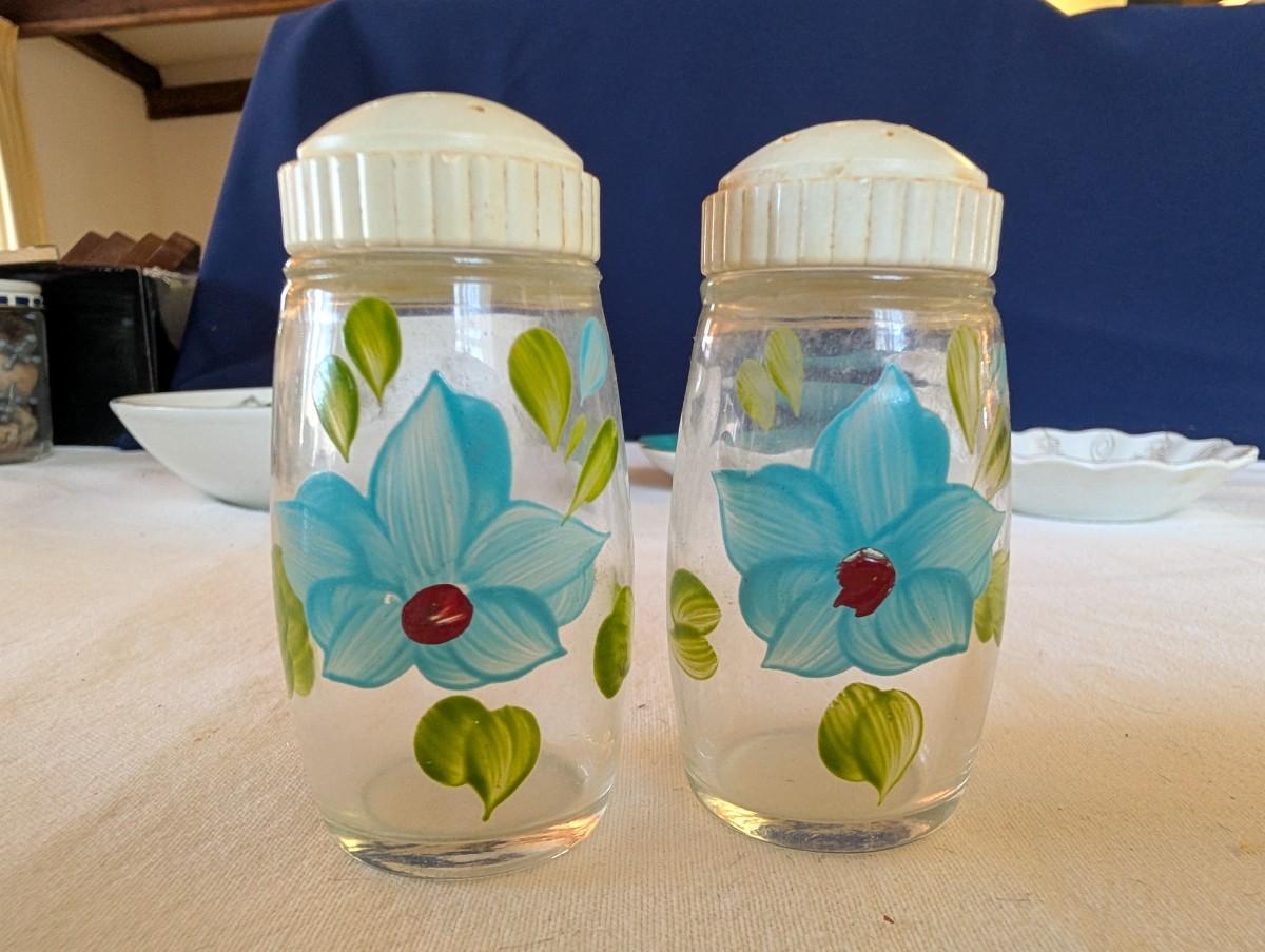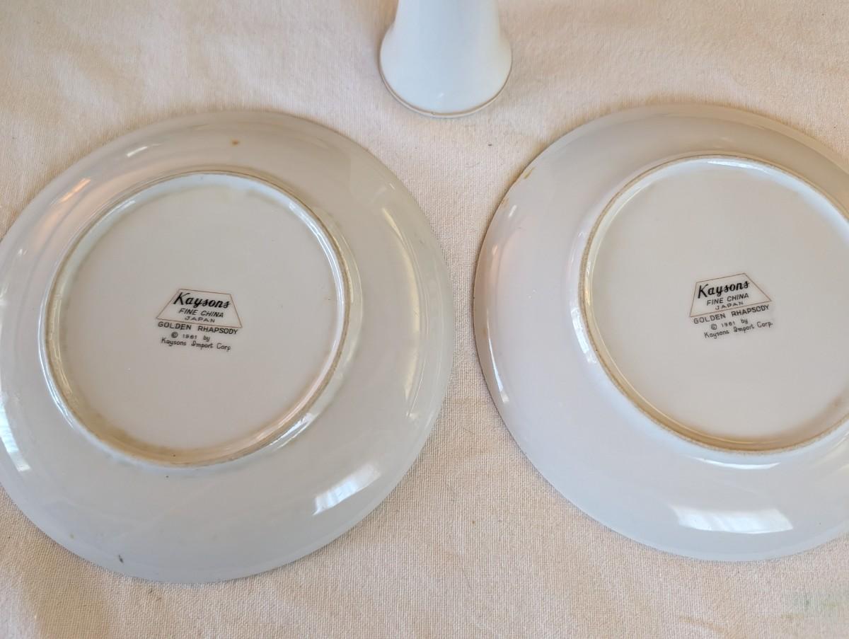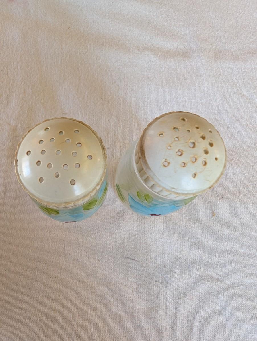 3 hand painted plates with hangers on the back. Hand painted salt and pepper shakers, salt shaker, 2 small china plates, bowl with beautiful flowers. 2 miscellaneous small dishes.