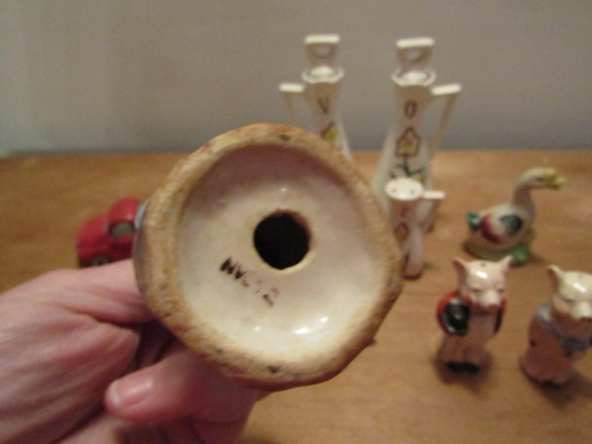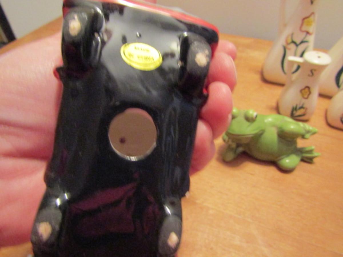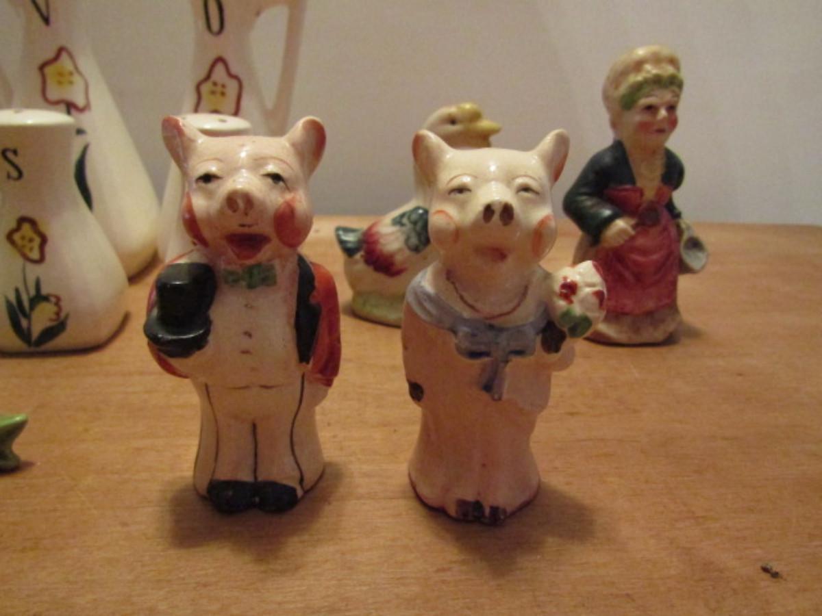 Group of Salt and Pepper Shakers. Matching oil and vinegar cruets included with one set. Some need bottom cork/plug.