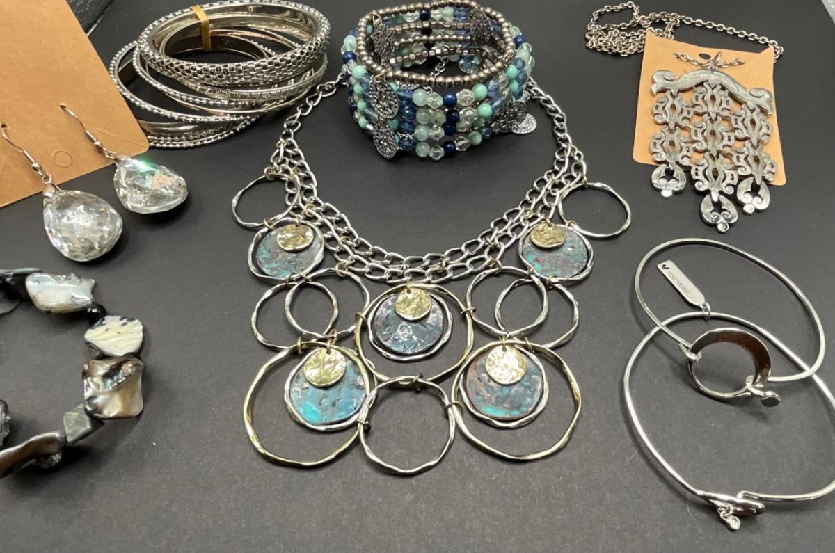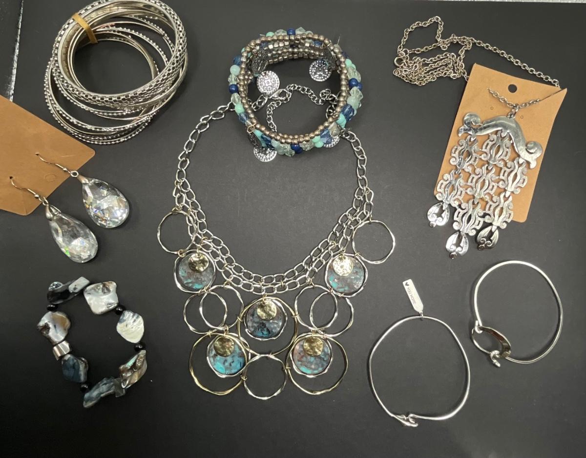Group of silver/blue jewelry
