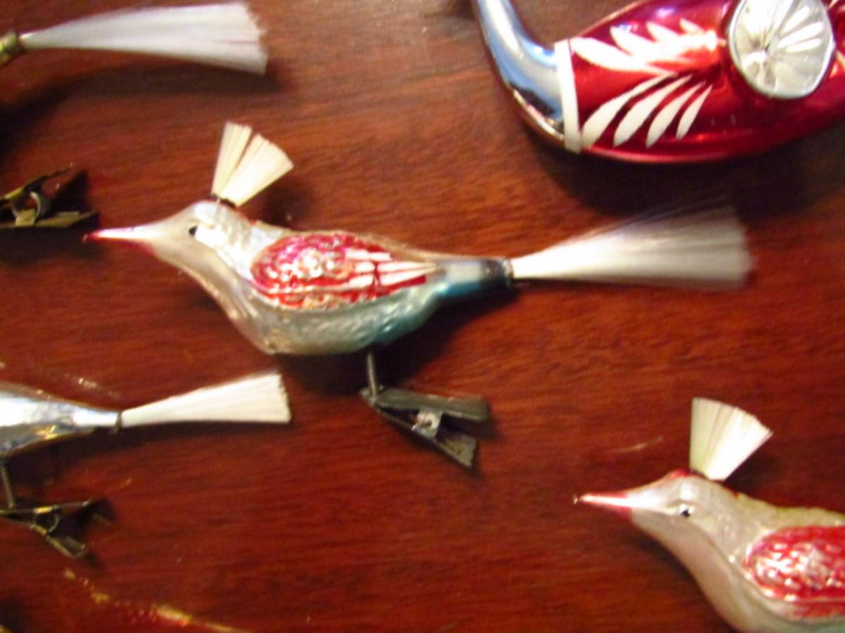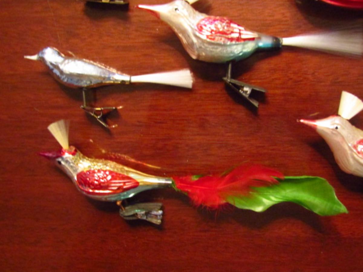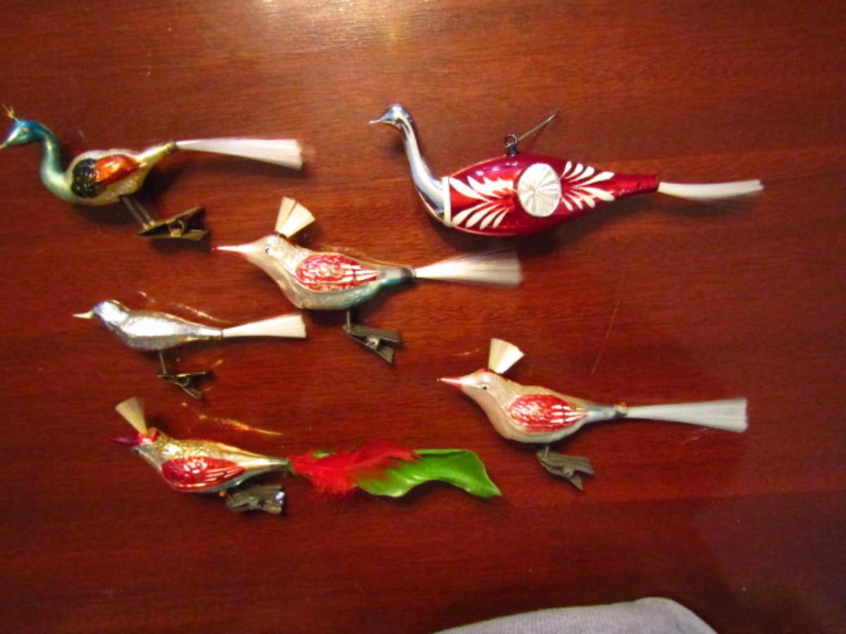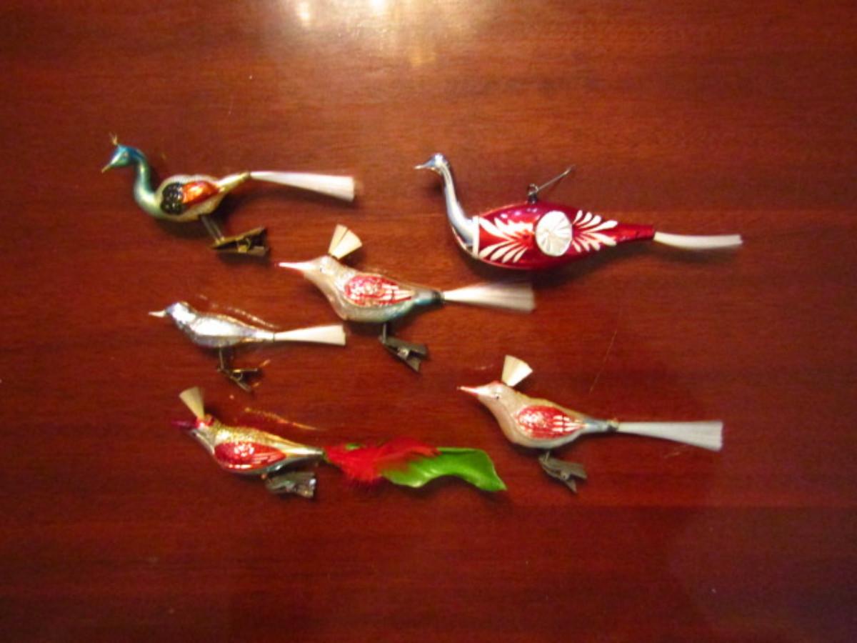 Group of Six Vintage Glass Bird Shaped Ornaments (C)