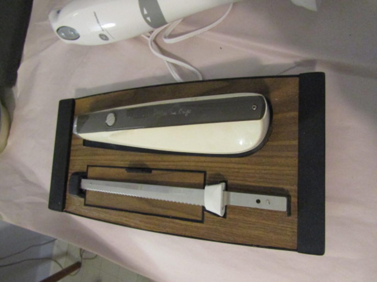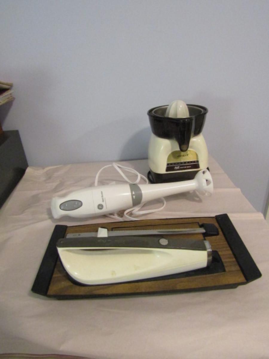 Group of Small Appliances- Electric Cutlery, Juicer, and Immersion Blender (E)