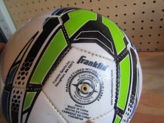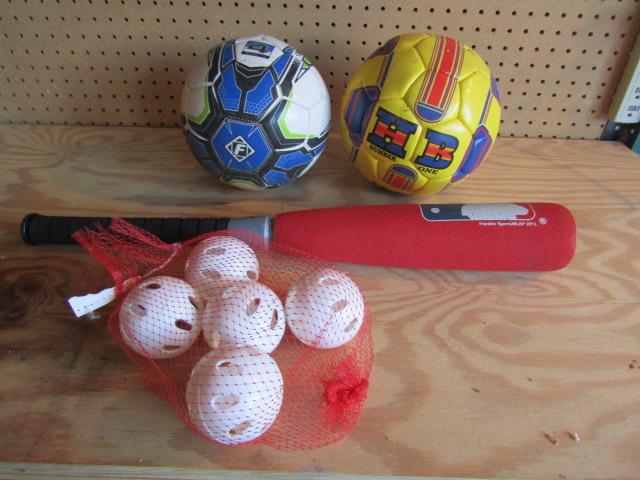 Group of Sporting Goods- Soccer and Wiffle Ball. Soccer balls are Franklin brand #4, and HB brand #1.