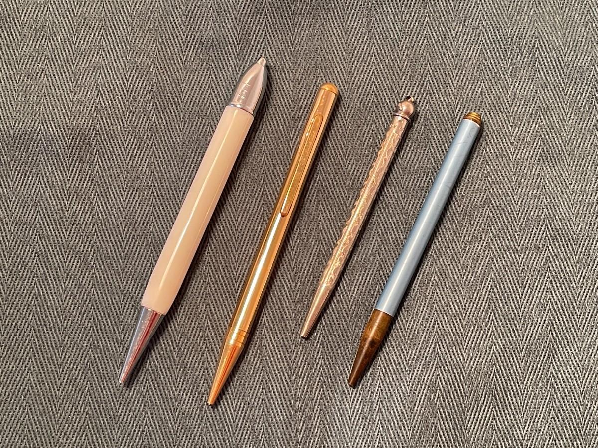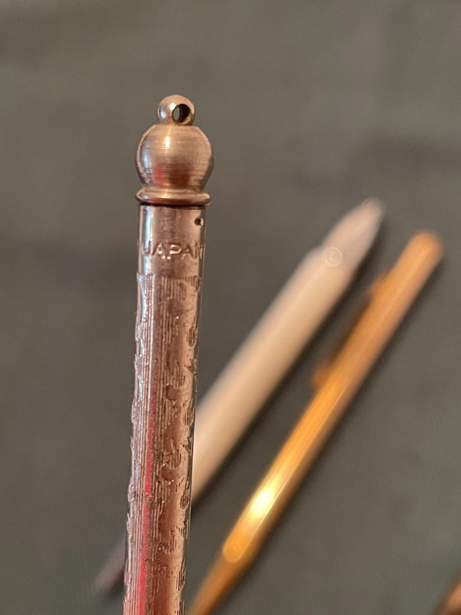 This group has four pencils and the silver tone pencil is marked Made in Japan. They range in length 3 inches to 4 inches long and all have metal bodies.