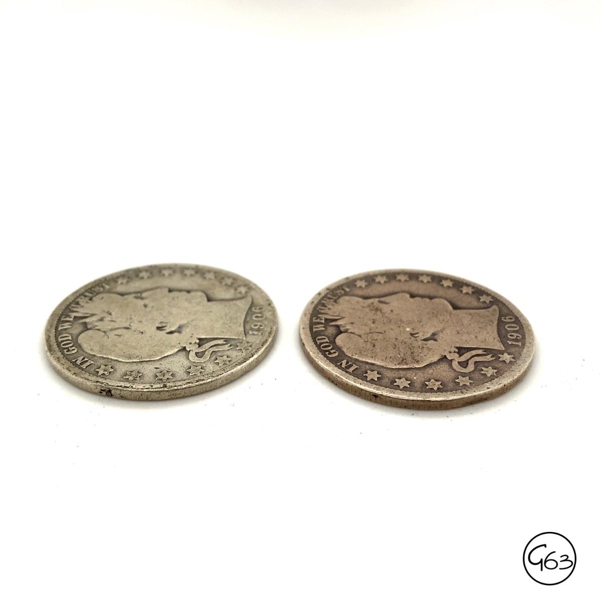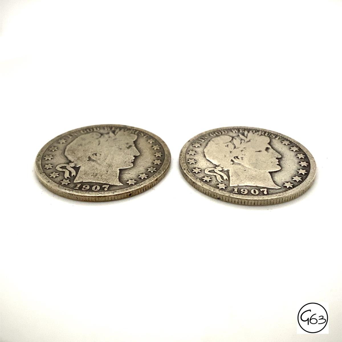 10 barber half dollars (1900x2, 1906x4, 1907x4).