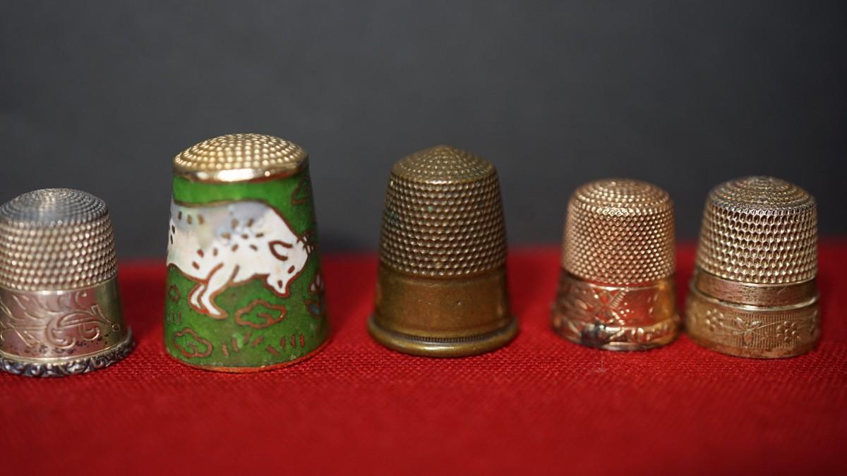 GROUPING OF 10 THIMBLES TO INCLUDE ANTIQUE, CHILDS, CLOISSONE