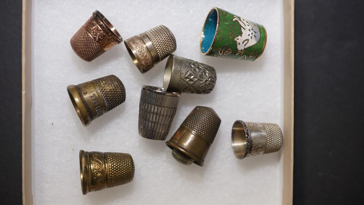 a vintage mix of ten. some of the thimbles are marked inside with the number 6 for the size.