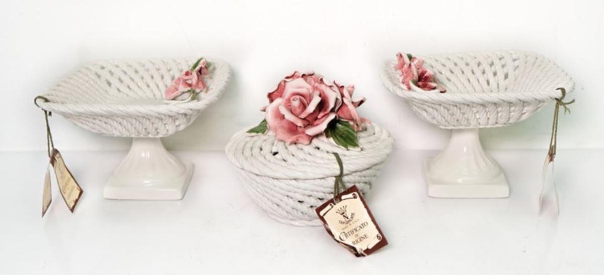 Grouping of 3 Capodimonte Ceramic Compotes & Basket w/ Lid