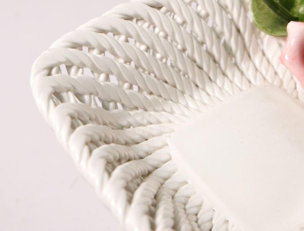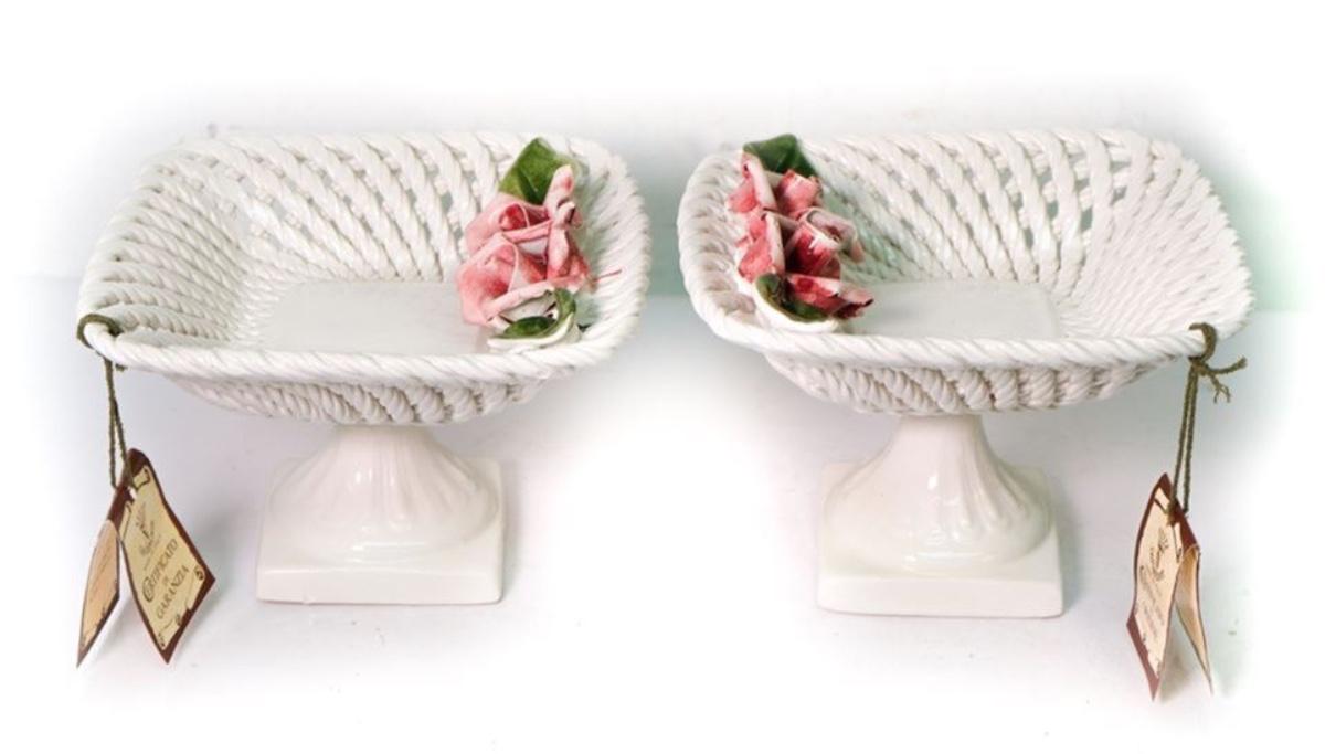 Rose motif. Compotes measures approx. 4.5"H, 6.5" top, 3" base. Basket measures approx. 5"H, 5.5" diameter.