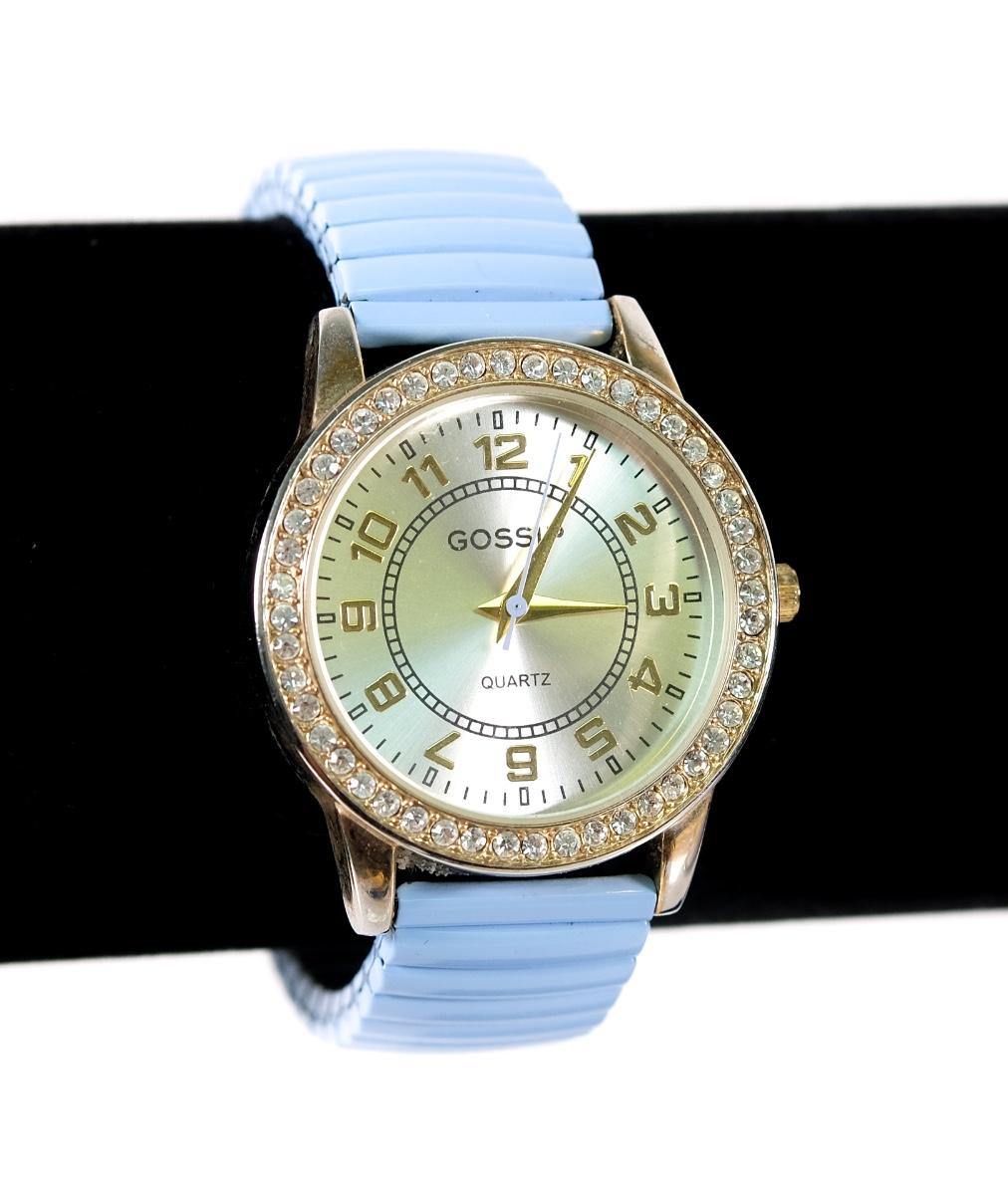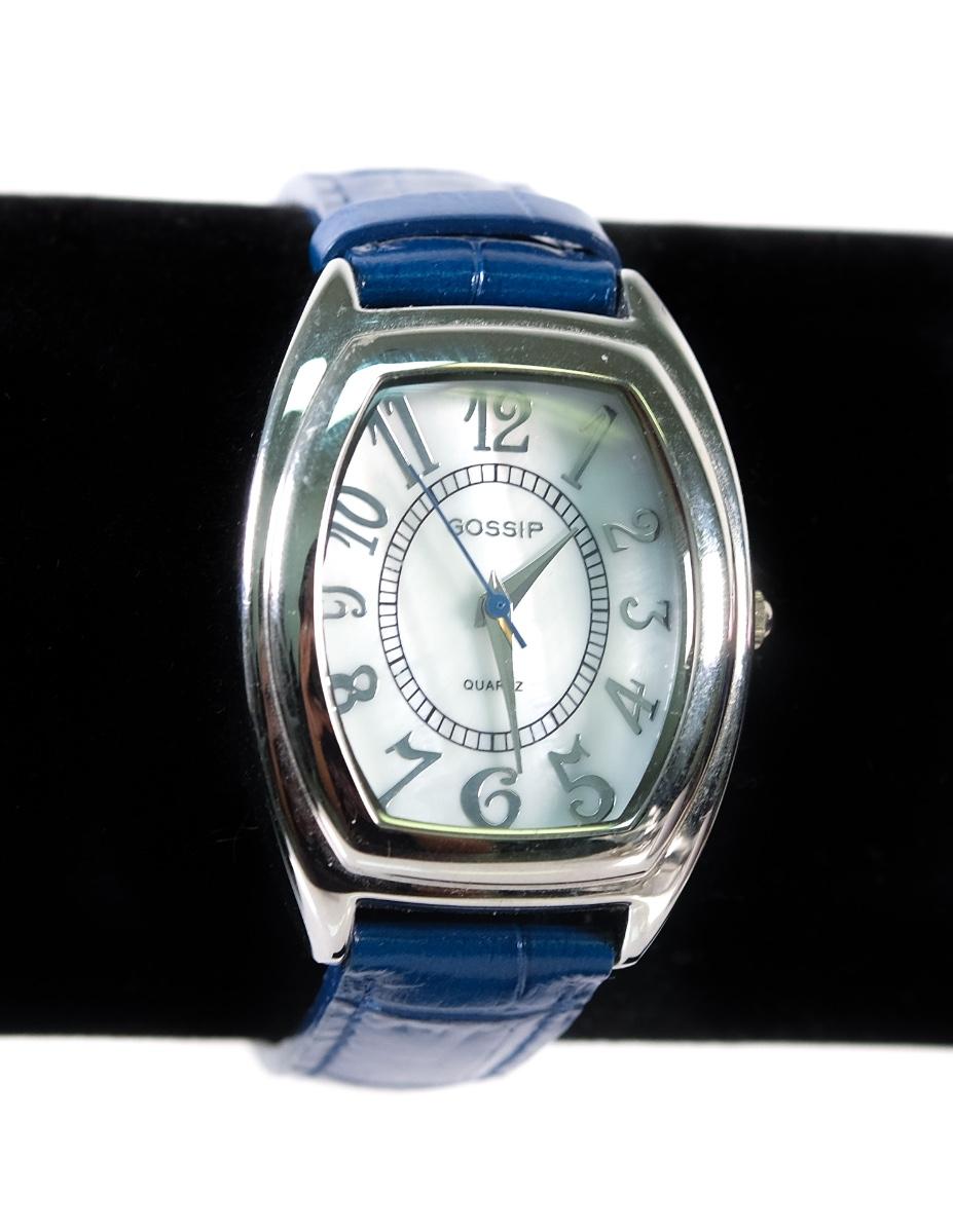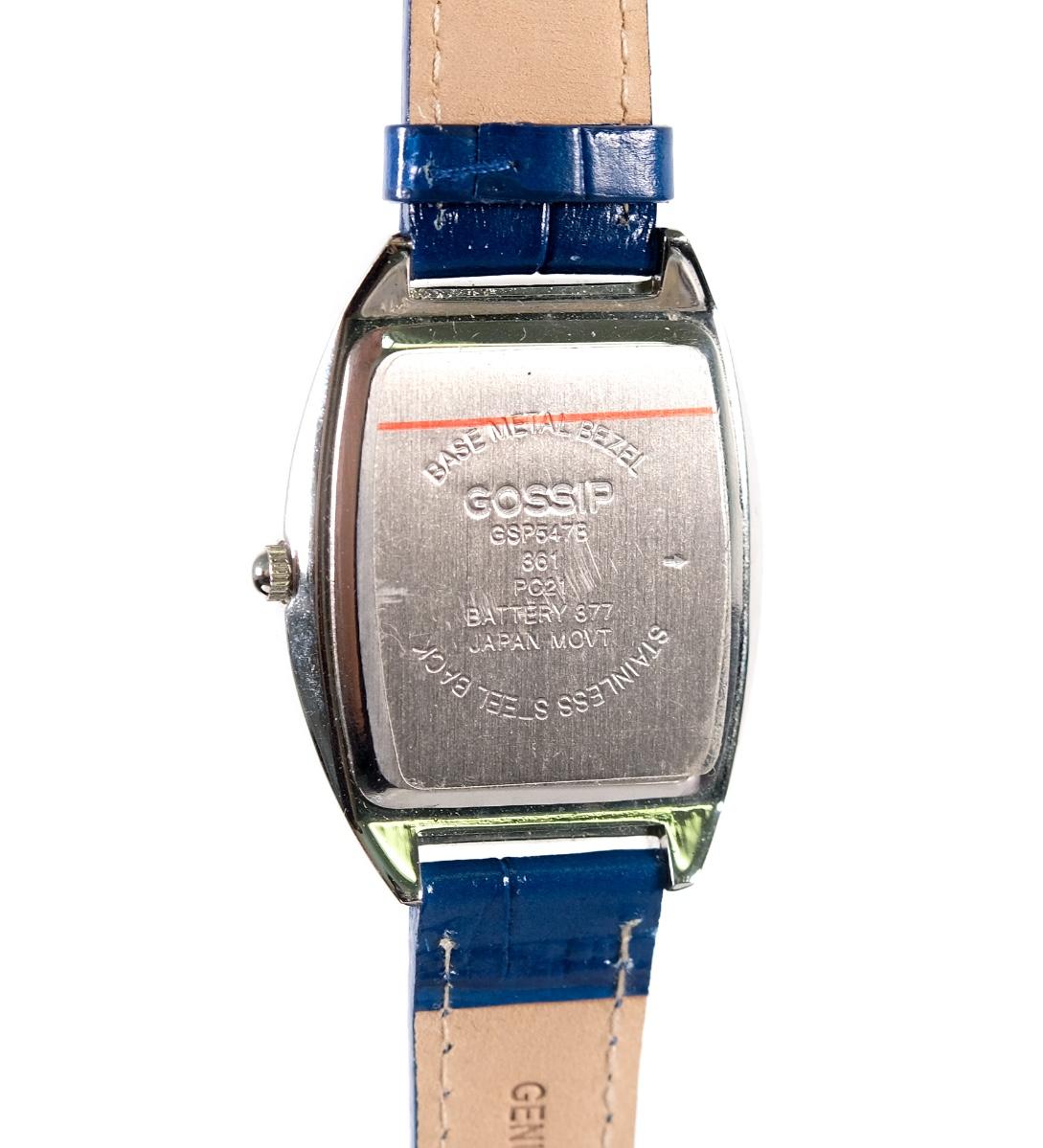 3 Watches total. 2 Gossip watches (Stretchy band & Leather band 6.5"), 1 unknown(leather band 7"). Unsure of working condition, they needs new batteries.