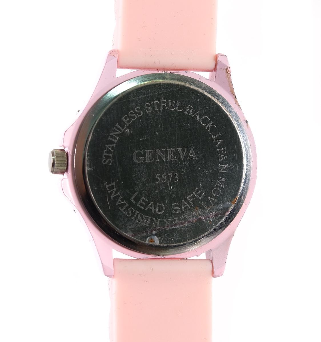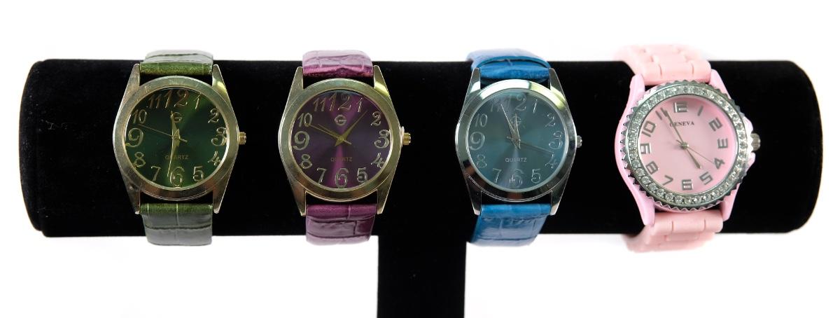 4 watches total. 3 are Gossip(7" band lengths) & 1 Geneva(8" band length). Unsure of working condition, they need new batteries.