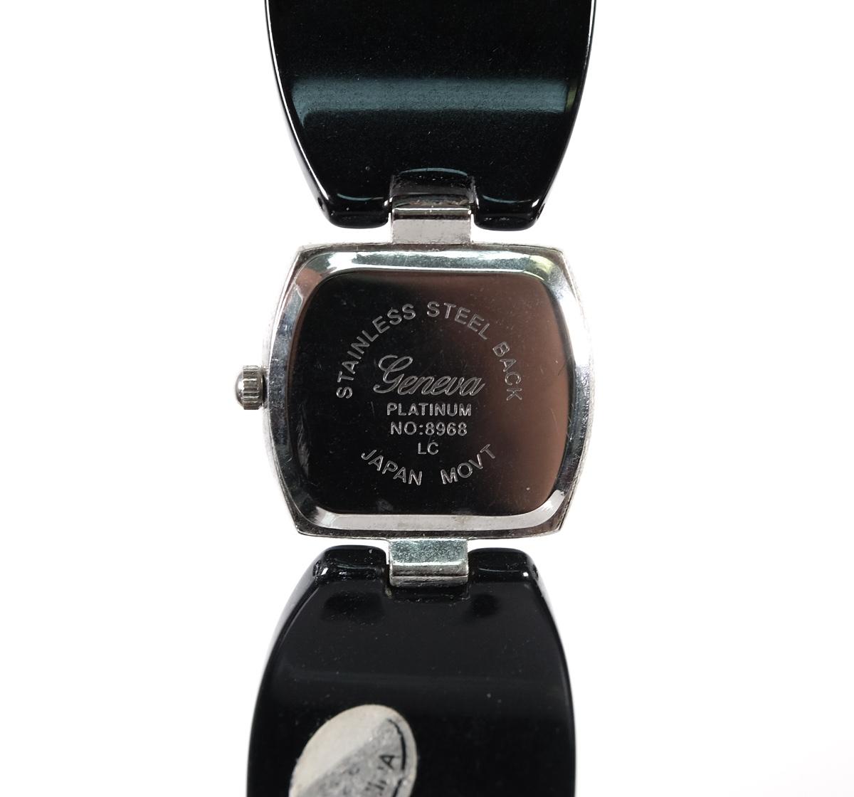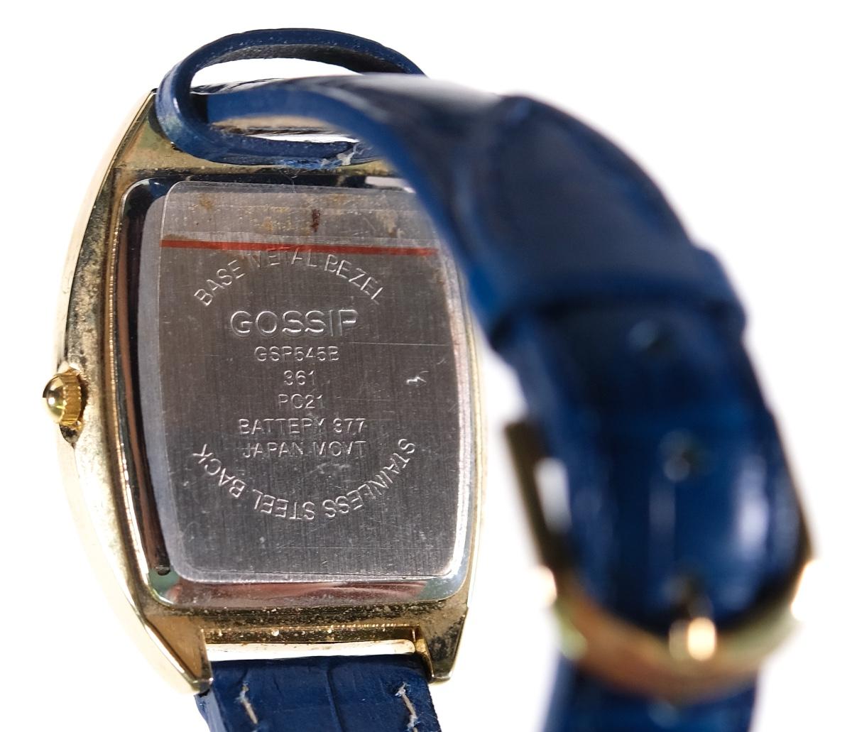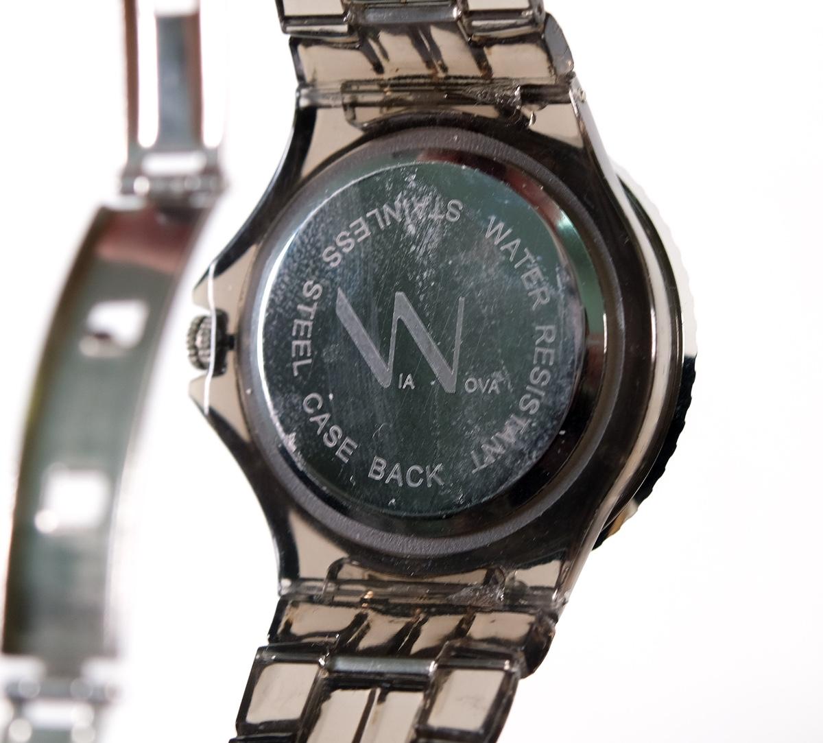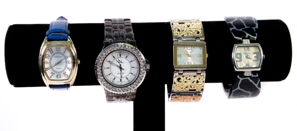 4 watches total. Gossip( 6.5" band length), Vivani(6.5" band length), Geneva(6" band length), Via Nova(2.5" inner diameter). Unsure of working condition, they need new batteries.