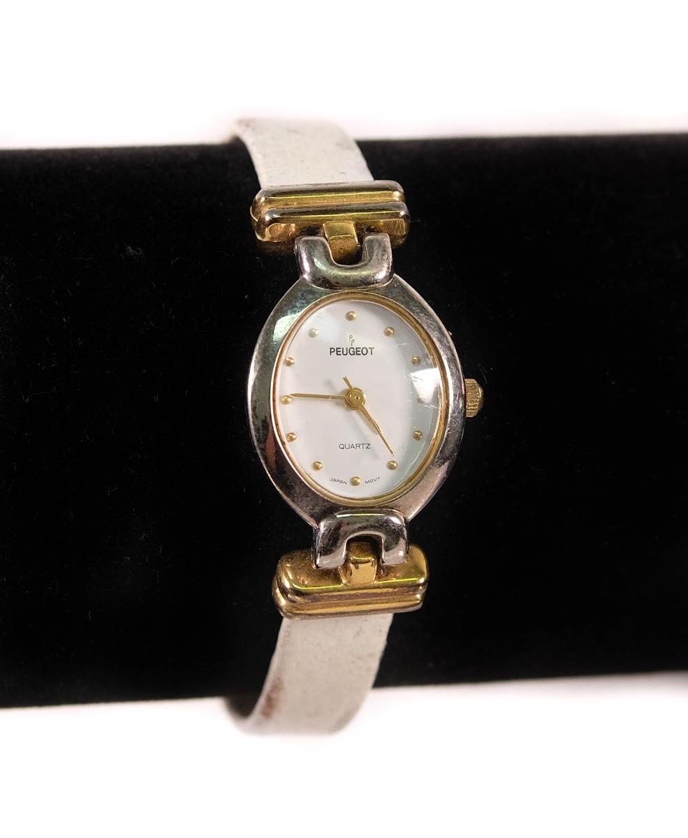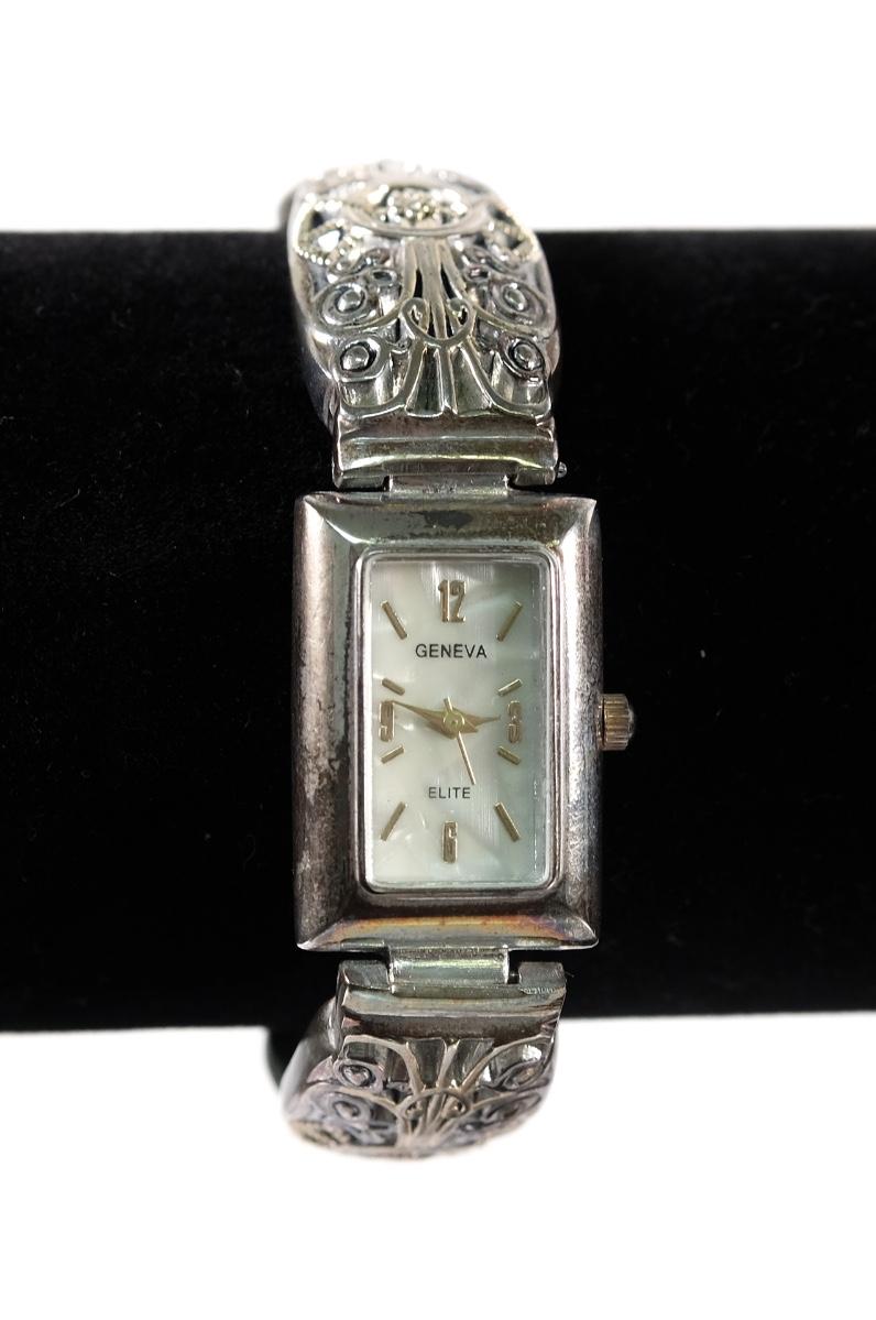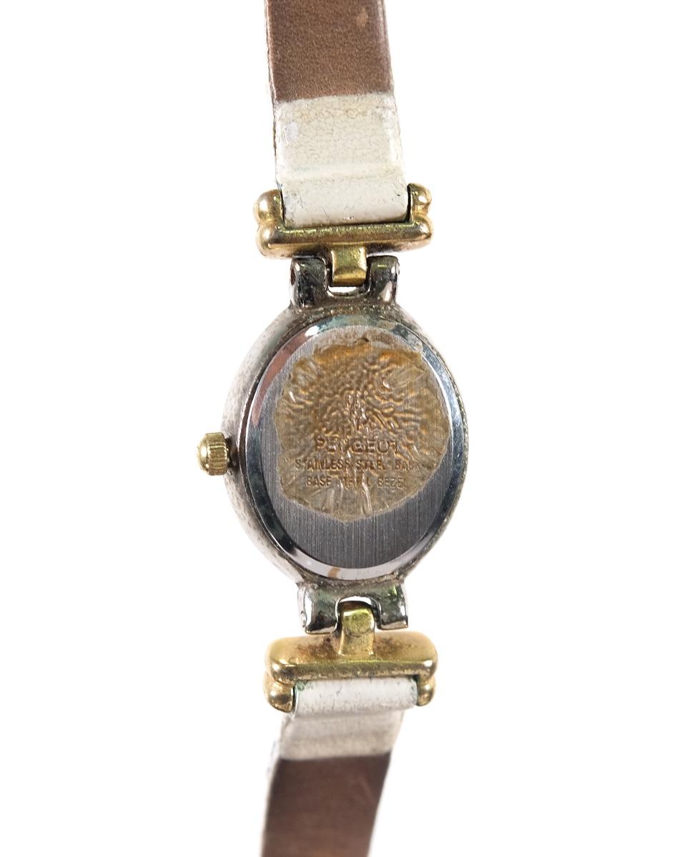 5 watches total. Gossip(7" band length), Peugeot(6.75" band length), Geneva(7.5" band length), CL(2.5" inner diameter), R.O.V(6" band length). Unsure of working condtion, they need new batteries.