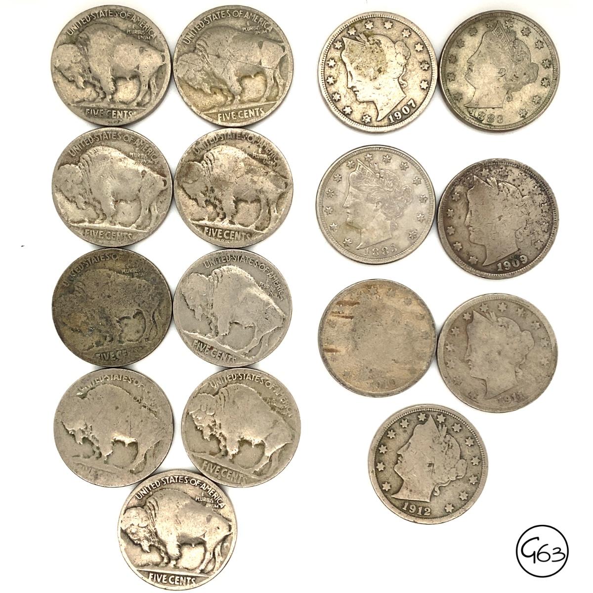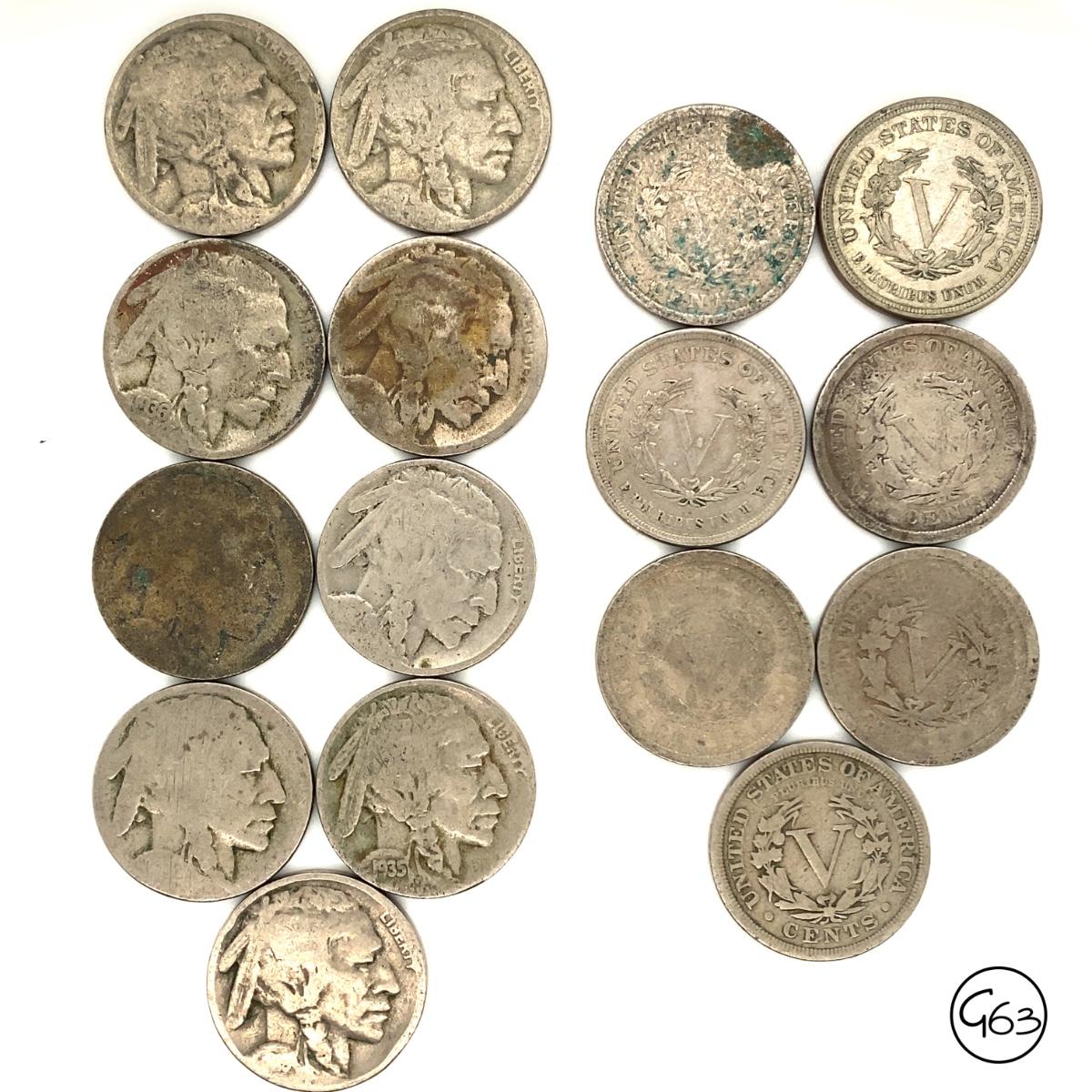 Grouping of 7 Liberty Head Nickels & 9 Buffalo Nickels