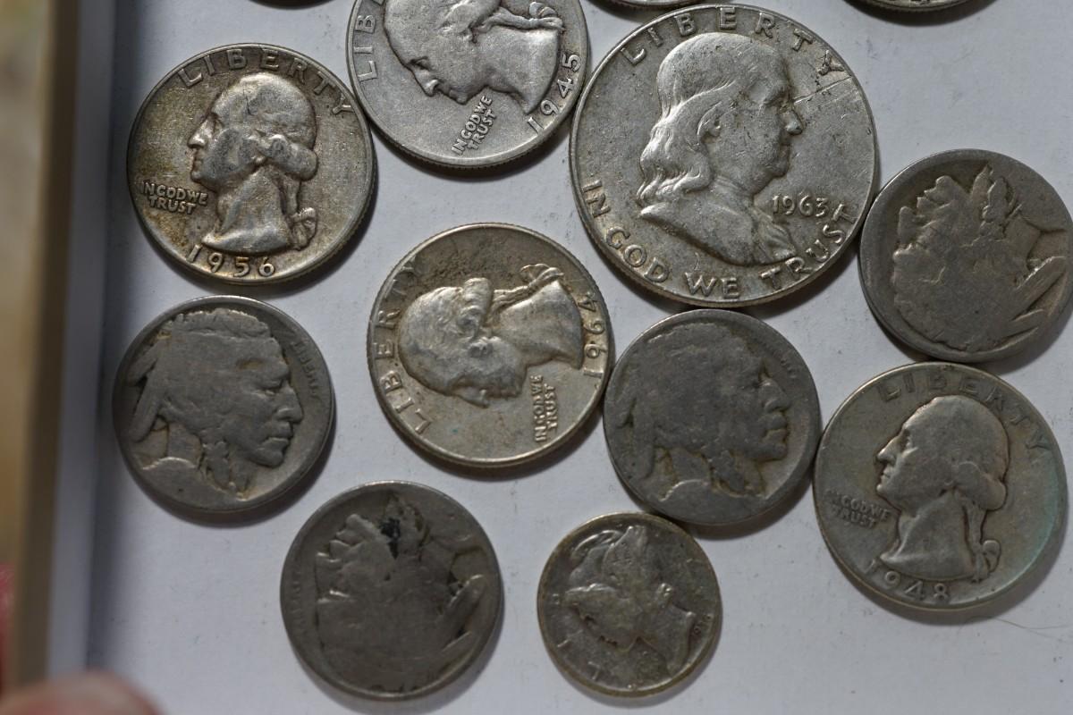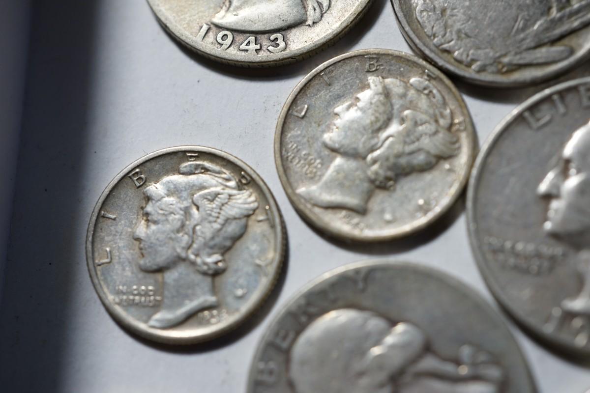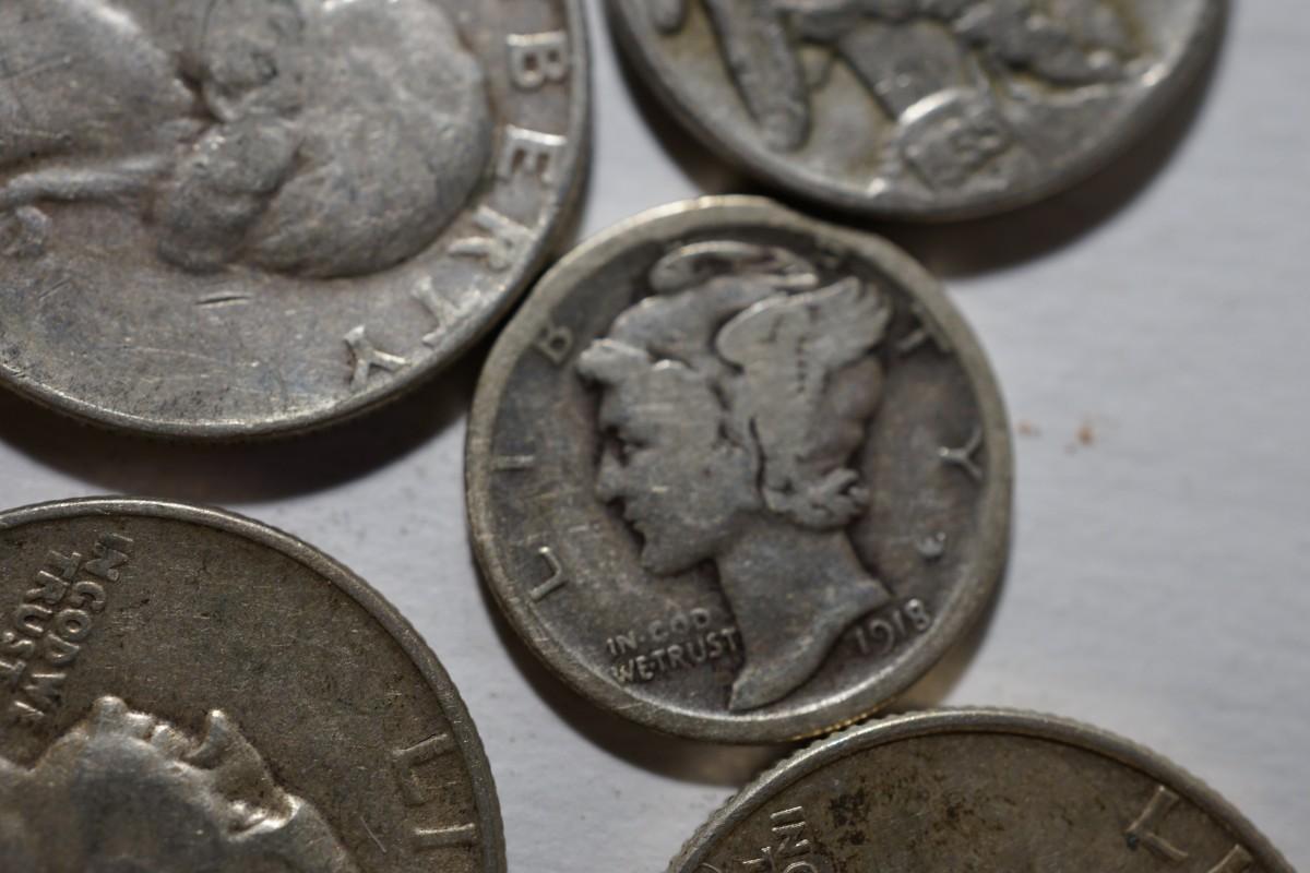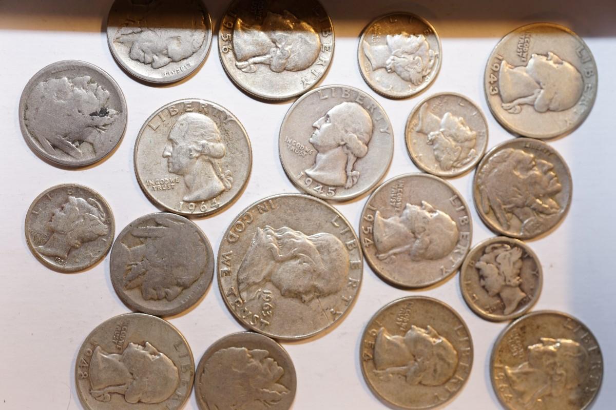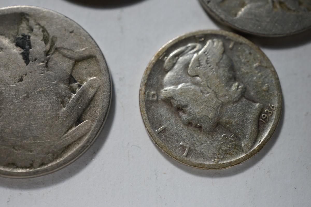 GROUPING OF EIGHTEEN AMERICAN COINS. MERCURY DIMES, BUFFALO NICKELS , PLUS