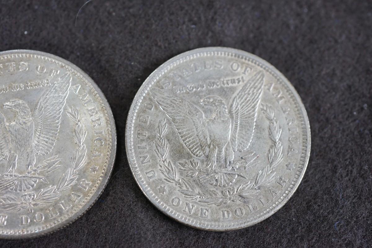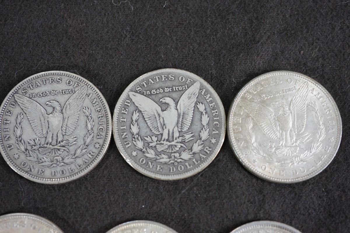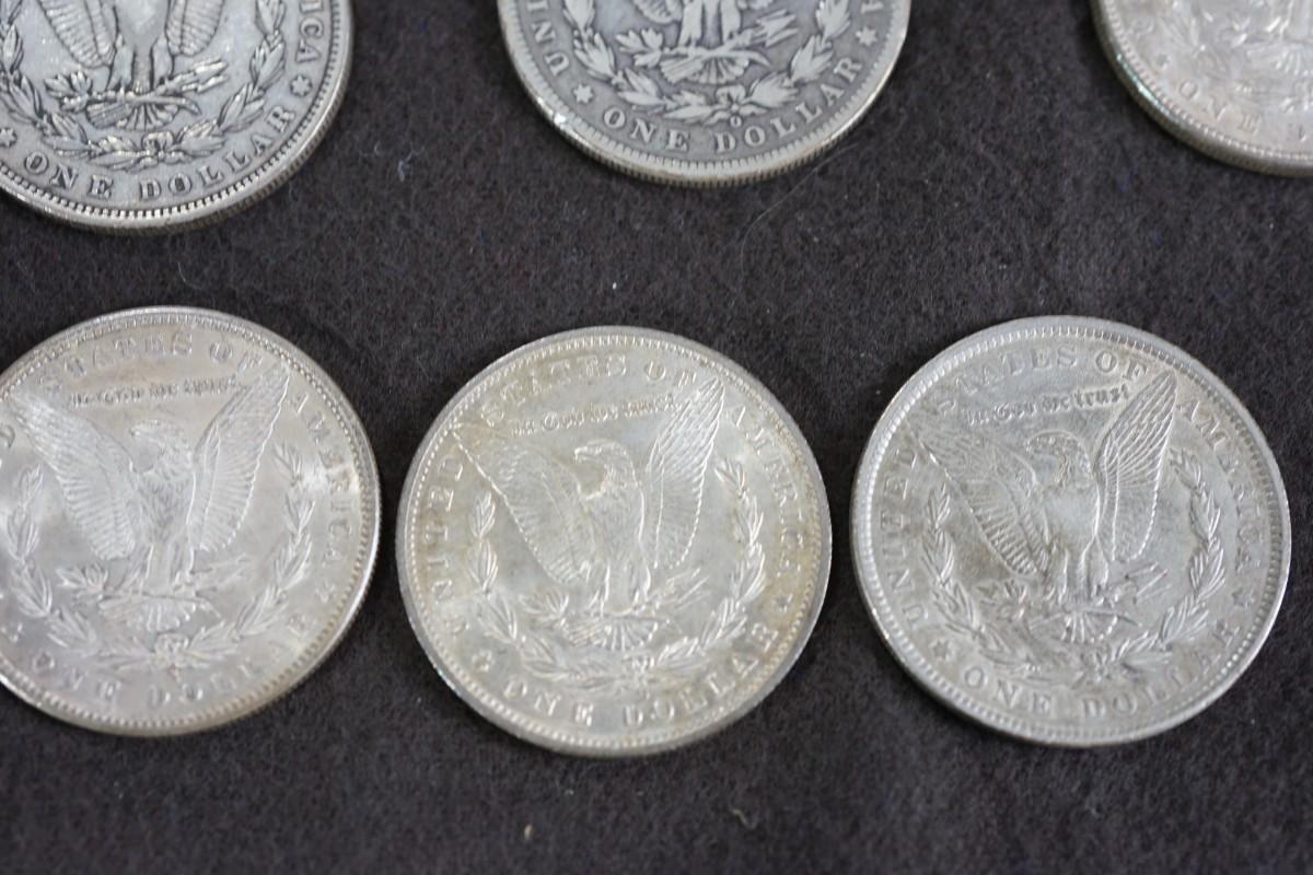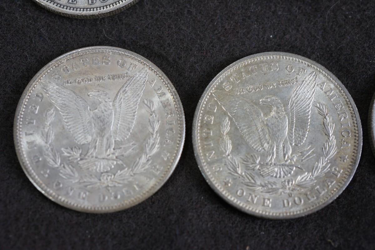 GROUPING OF SIX MORGAN DOLLARS. 1870's and 1880's dates