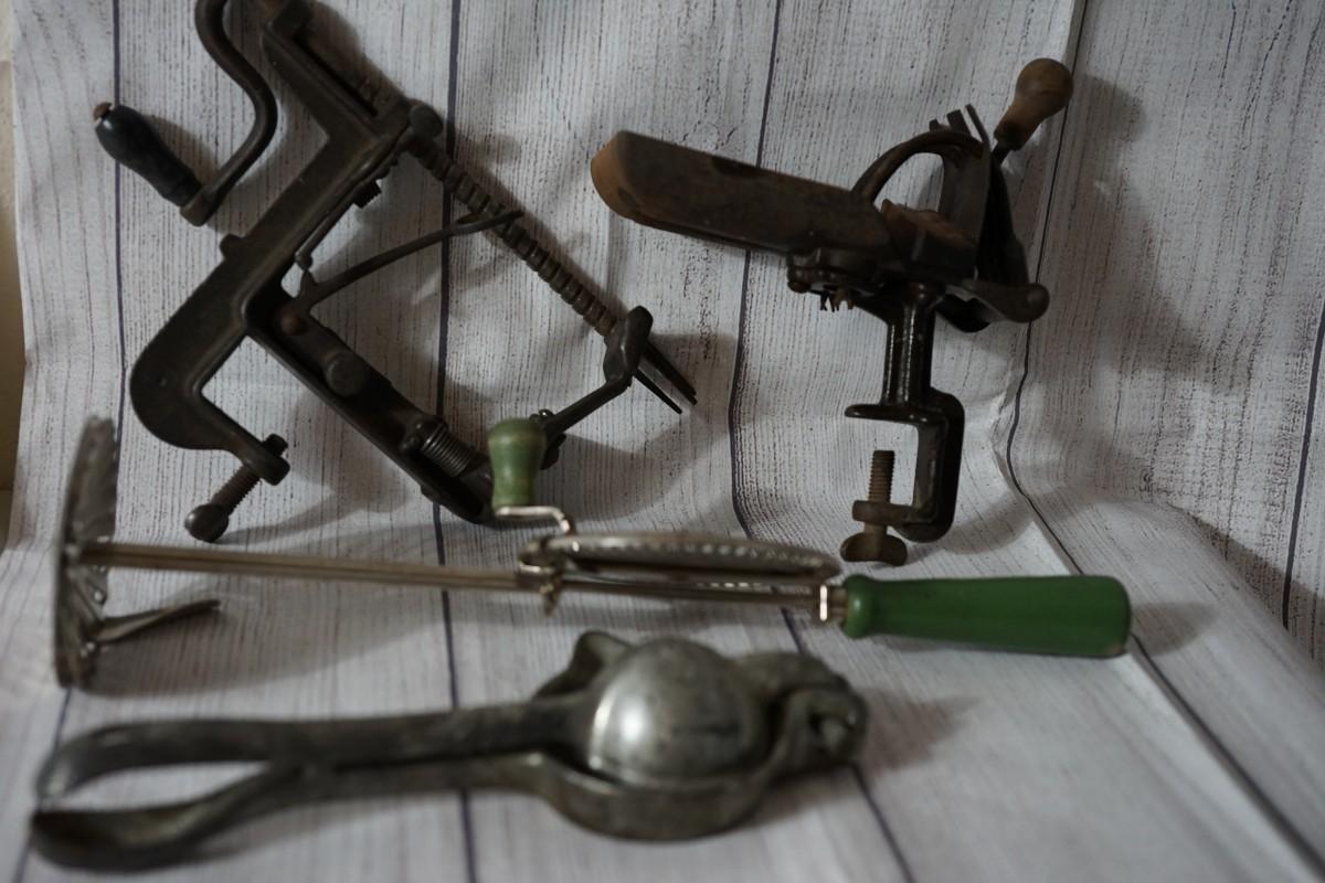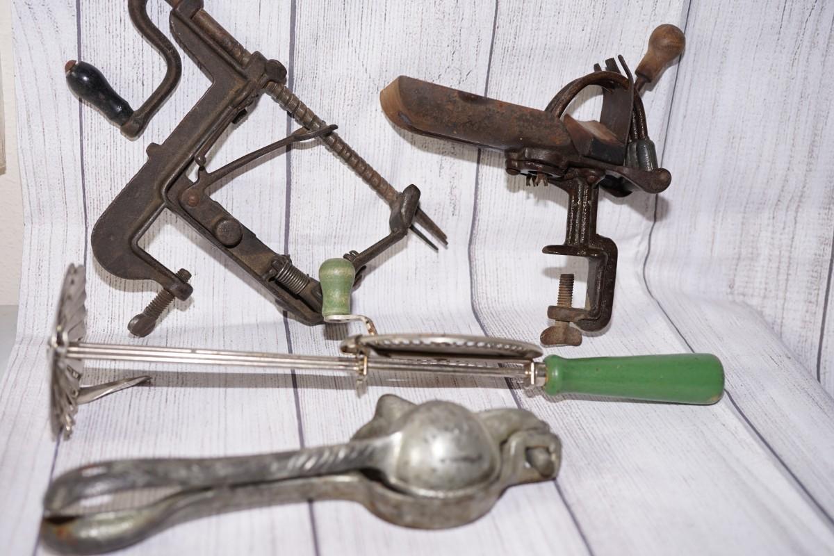 Apple peeler, cherry pitter, cream whip for the jar or crock and a lemon or fruit press.
