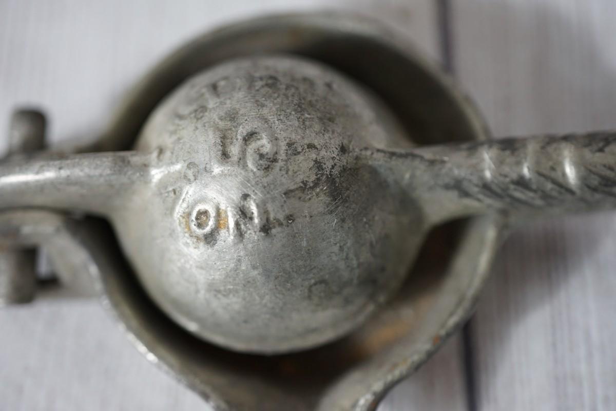 GROUPING OF FOUR ANTIQUE KITCHEN ITEMS TO INCLUDE CHERRY PITTER