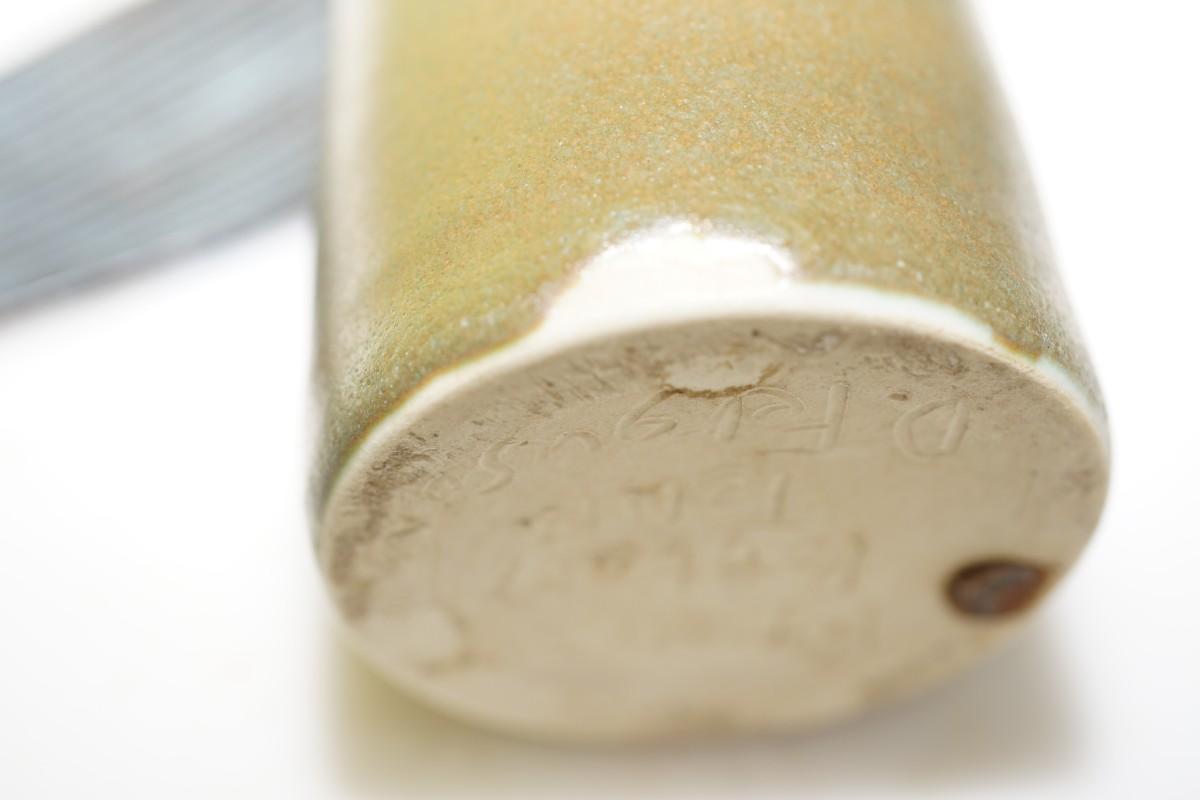 the first is a 5 1/4" pigeon forge of tennessee pottery vase of mustard colored matt glaze. ( slight factory flaw of missing glaze on the base rim. signed on base.