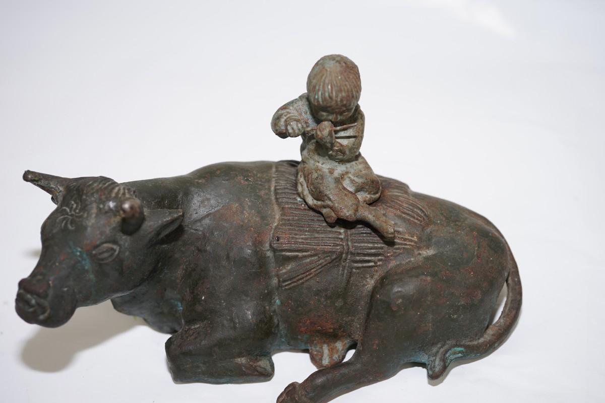 bronze Asian cenor of boy finial on water buffalo, the boy is not attached and is for the cap
