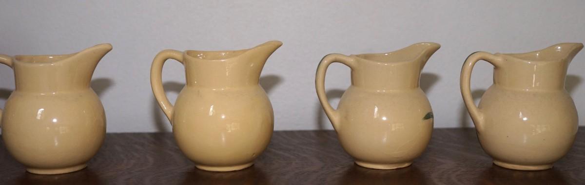 GROUPING OF FOUR WATTS WEAR 4" PITCHERS OF DIFFERENT PATTERNS