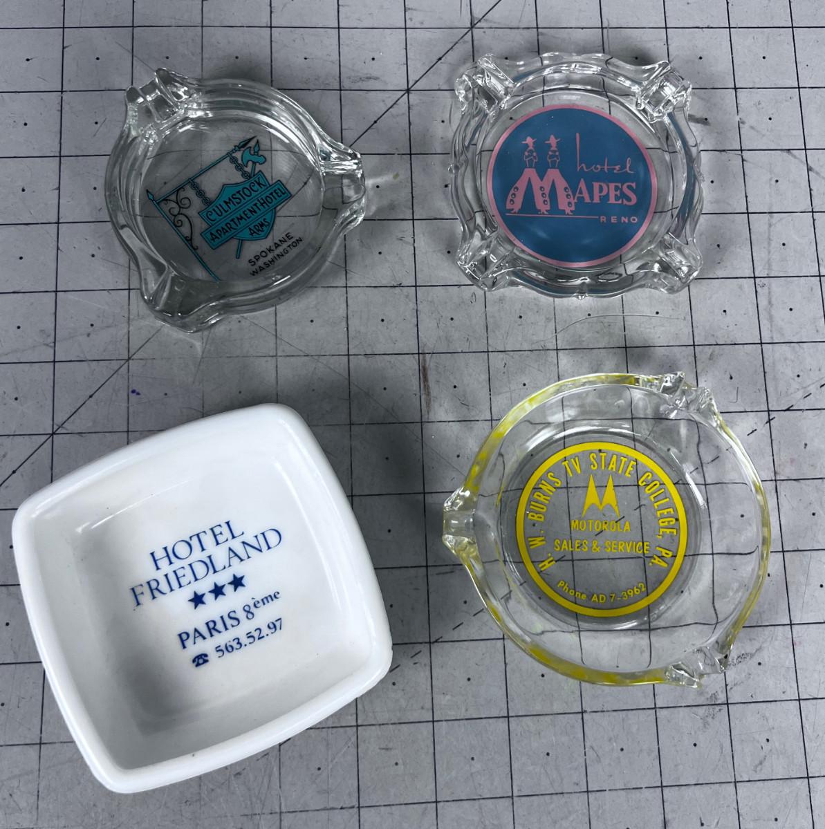 Grouping of Glass VINTAGE Ashtrays - 4 Total