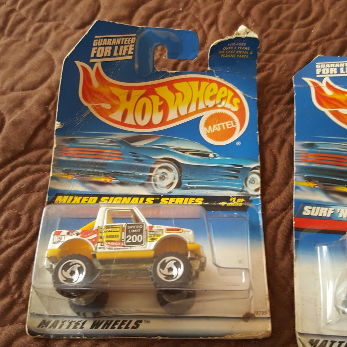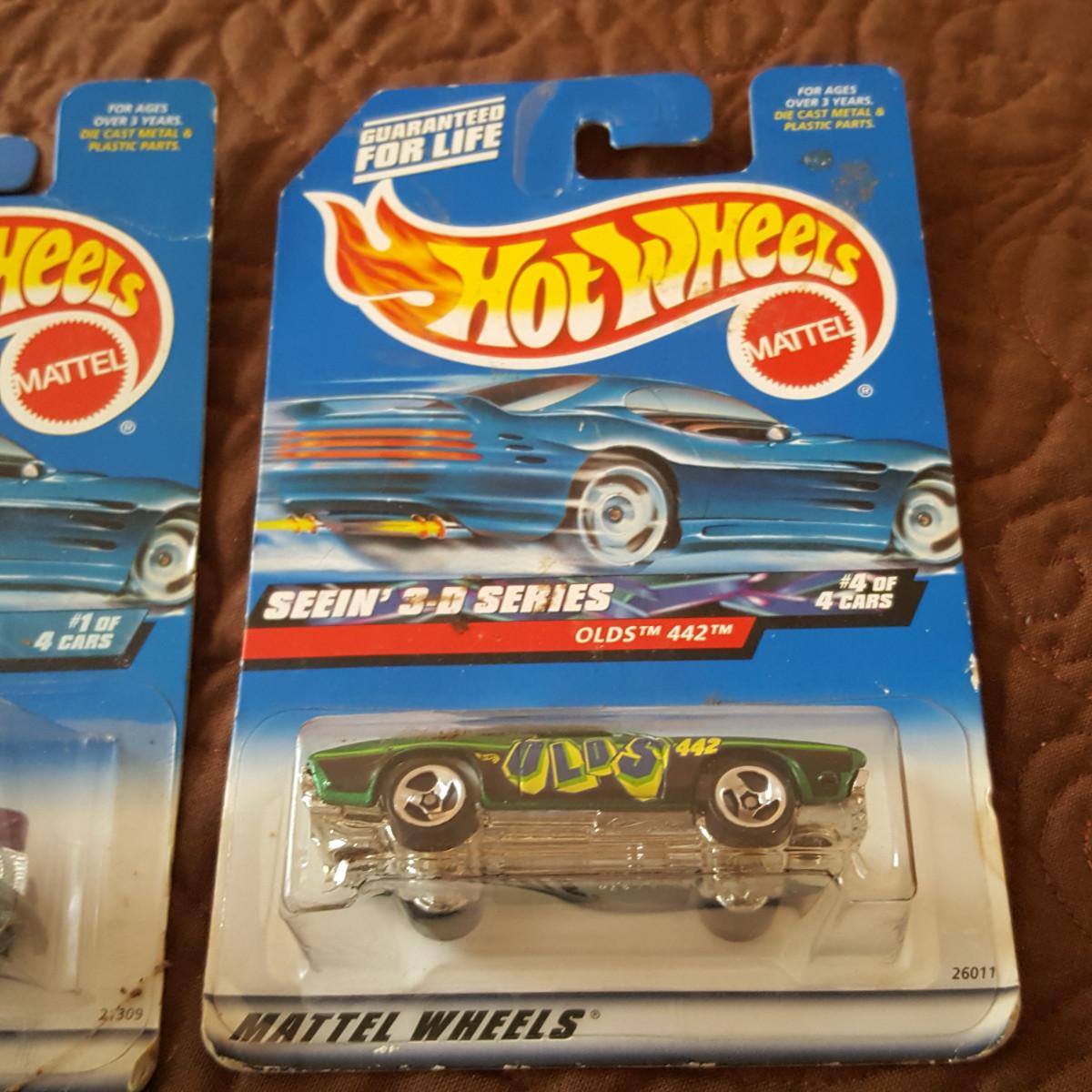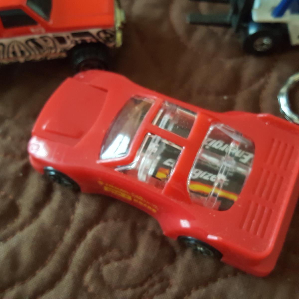 This auction lot is for a Grouping of 6 Hot Wheels plus a Eveready Car flashlight key chain. Two of the Hot Wheels are still in unopened hanging sales cards and one is in a hanging sales card that has been slightly opened - the cards are in various conditions - please see photos. The sale includes a Street Roader, a Olds 442 and a 40s Woodie with their cards and a Alaska Trek and Forklift with no cards. Plus the Eveready Car Light Key Chain. Also includes a How Wheels car that is decorated with Roy Lichtenstein-style artwork for a total of 6 items.