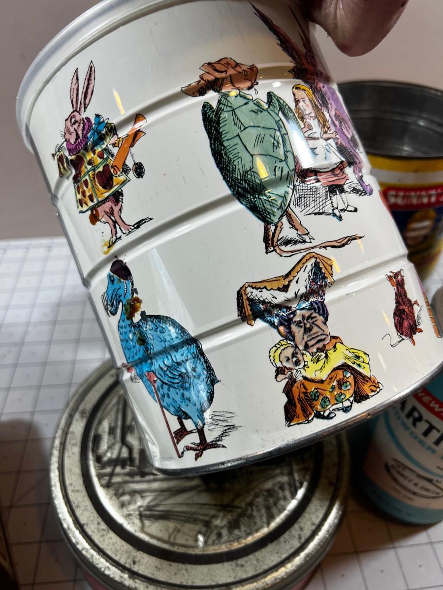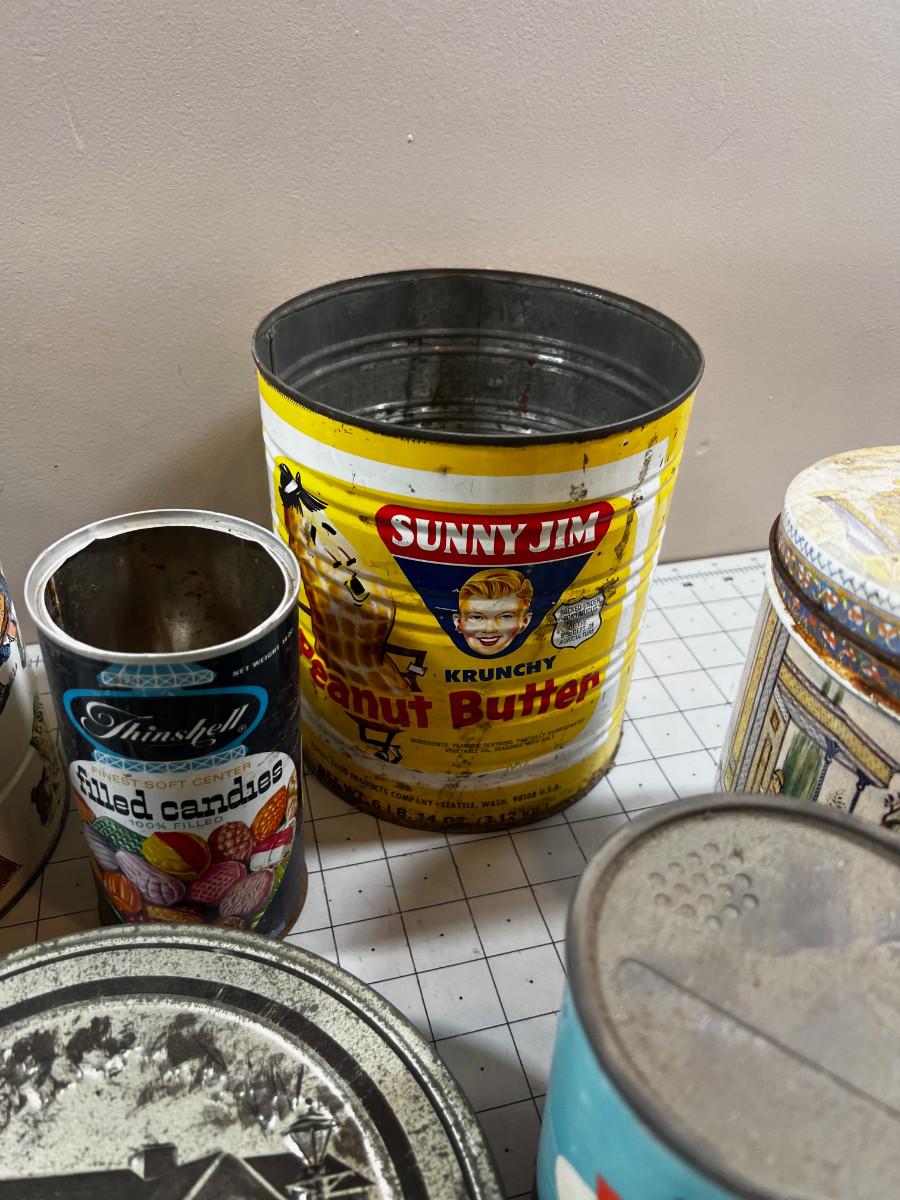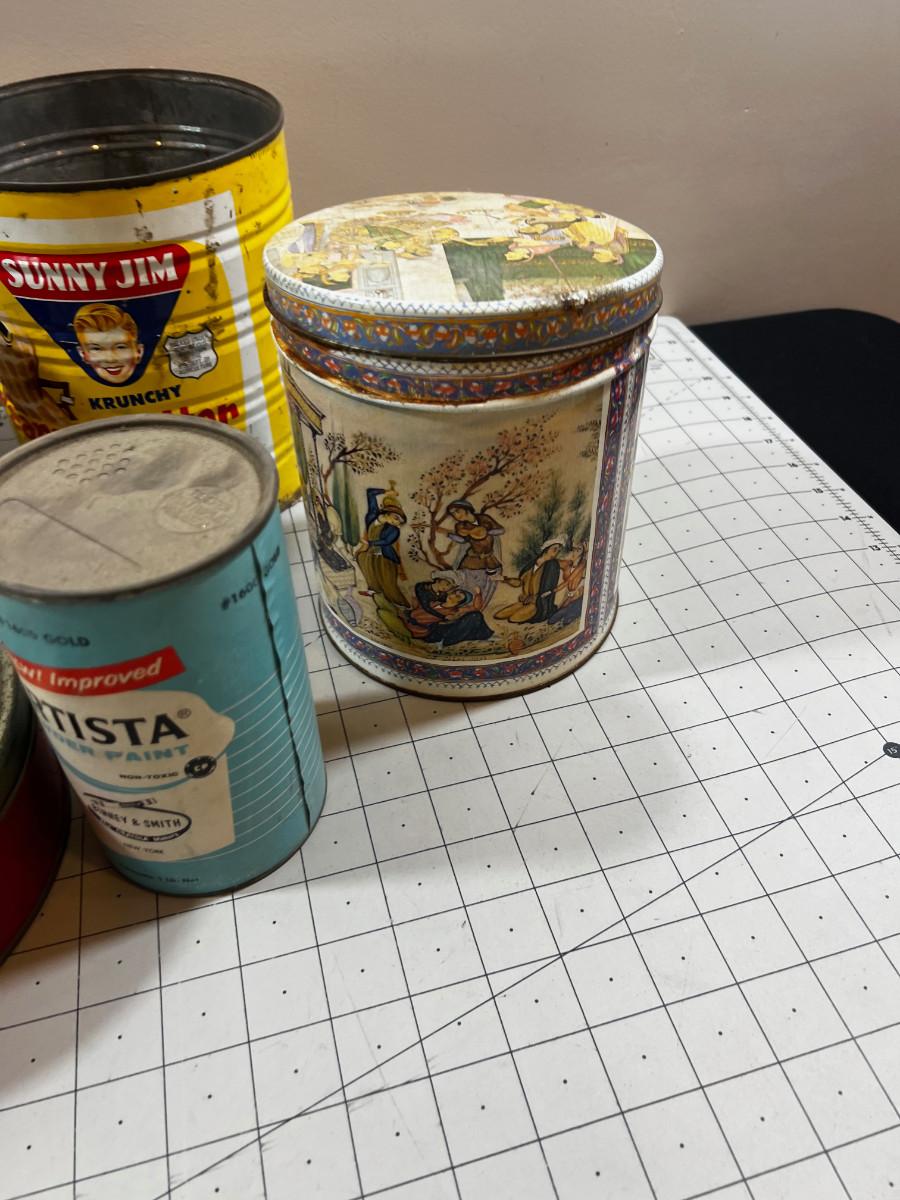 Grouping of Metal Tin Cans, Alice and Sunny Jim AWESOME!