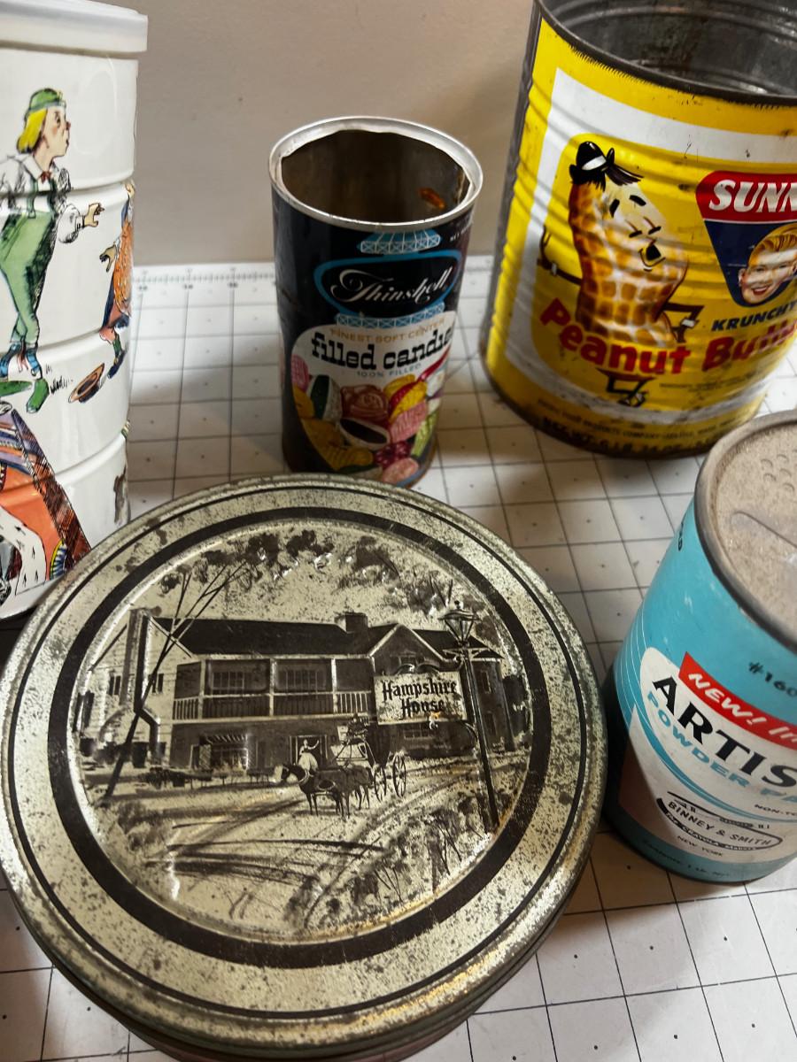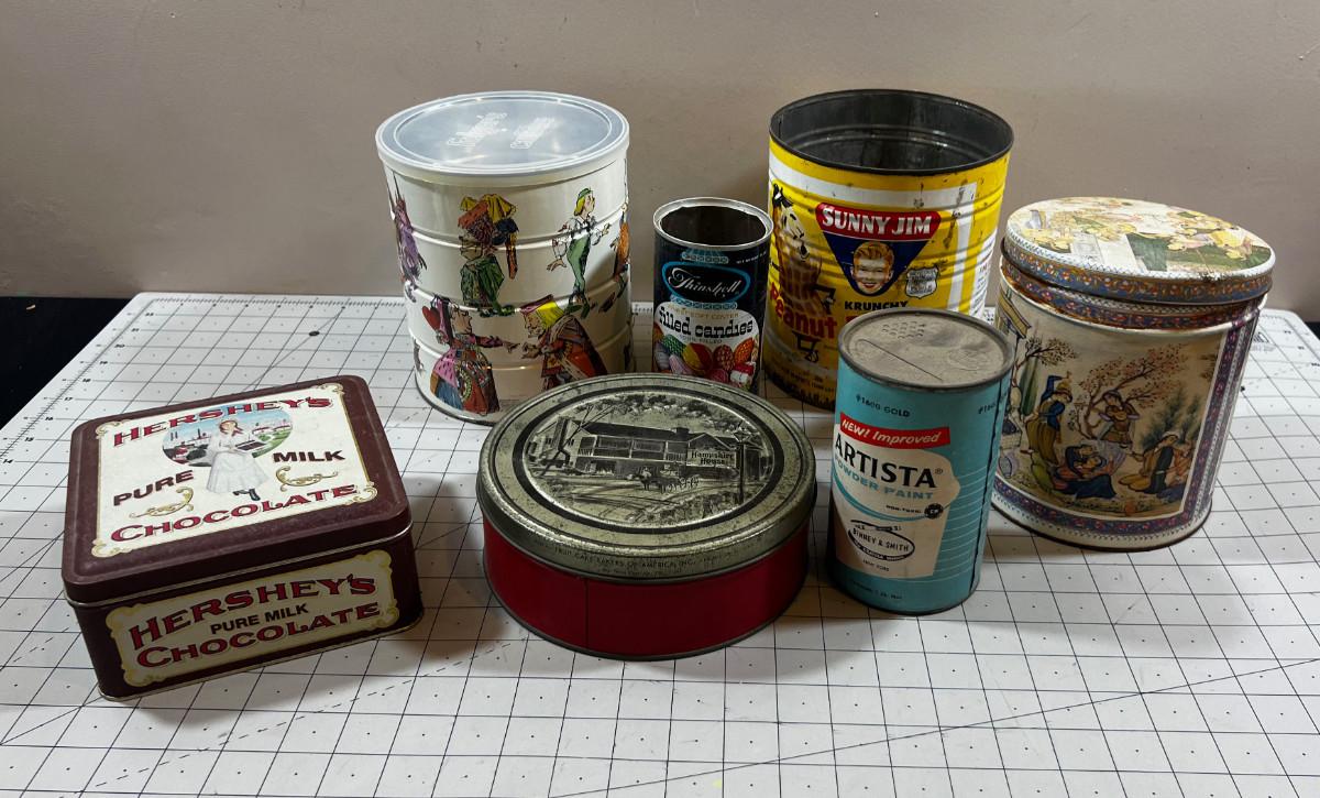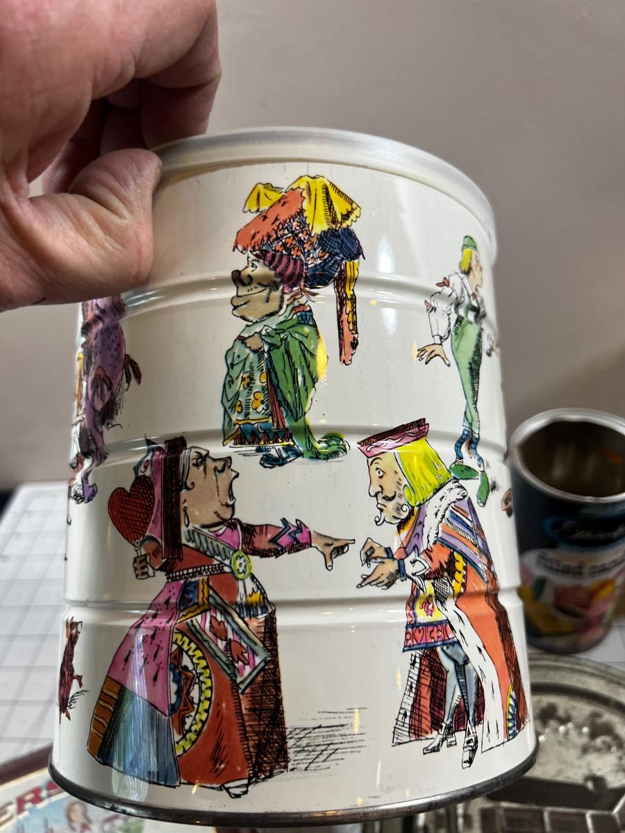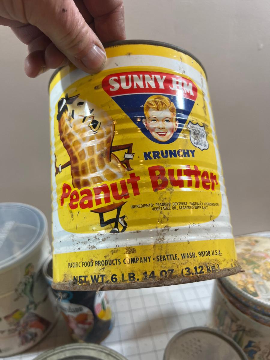 Grouping of Metal Tin Cans, Alice and Sunny Jim AWESOME!